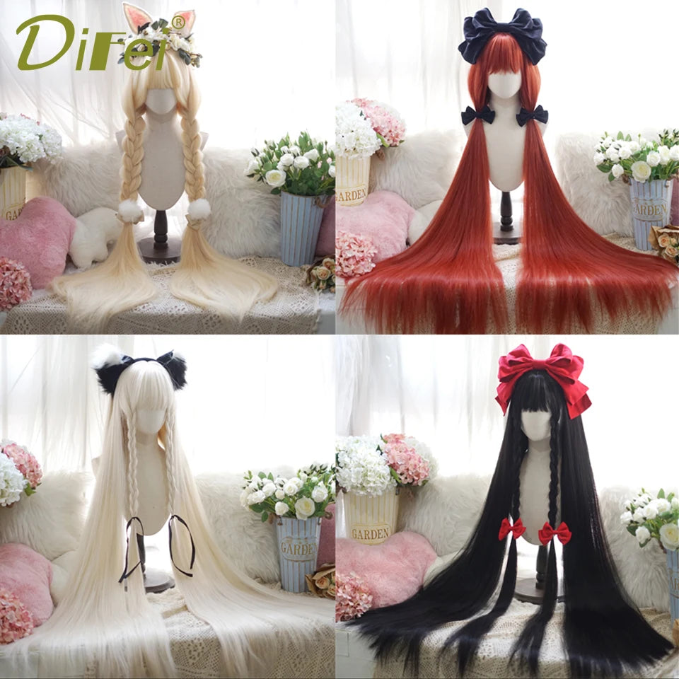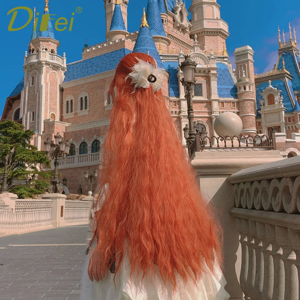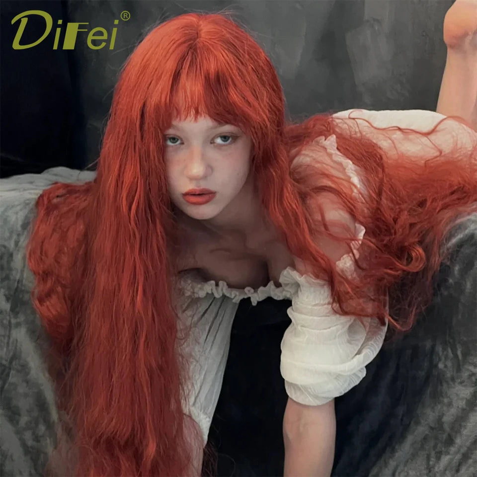120cm Long Wavy Hair Synthetic Wigs Female Red Brown Coaplay Lolita Wig With Bangs Natural Hair Wigs Women Heat Fesistant Fiber