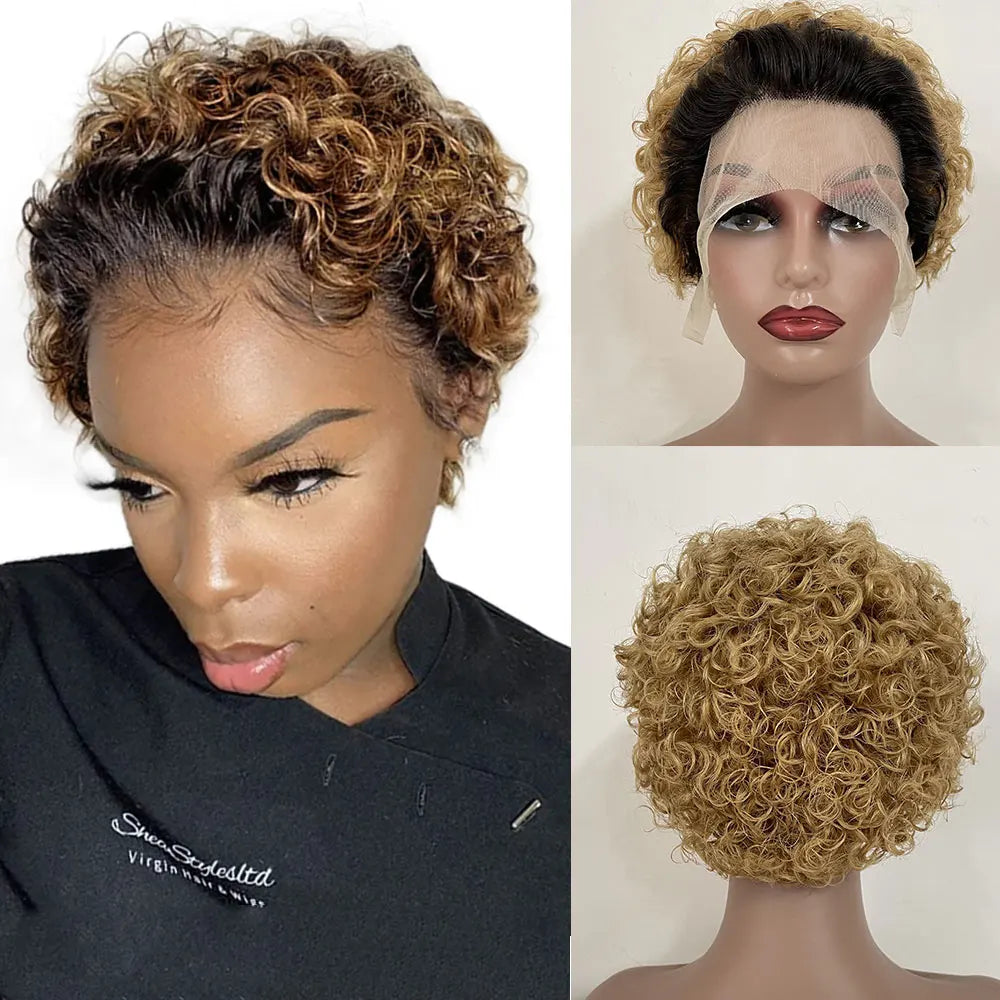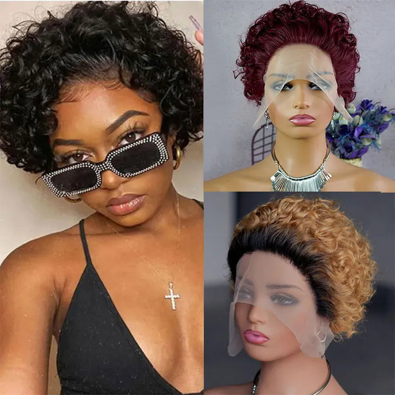 13x1 Curly Human Hair Lace Frontal Wig Pixie Cut Curly Lace Front Human Hair Wigs for Women Brazilian Human Hair Wig Sale