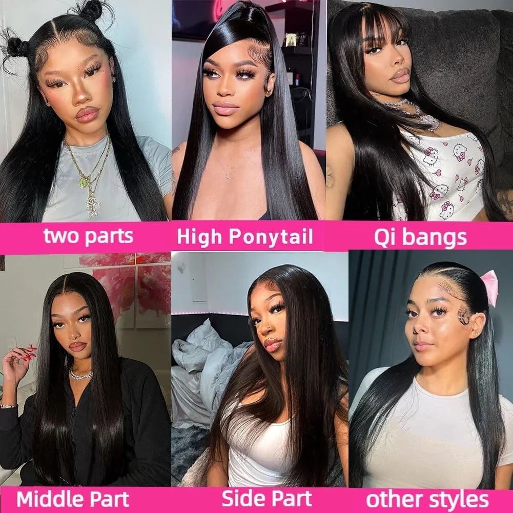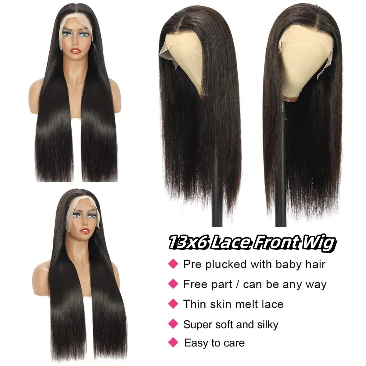 180% Density Natural Straight Human Hair Wig 13x6 HD Lace Frontal Wig Pre Plucked 28Inch Remy Straight Human Hair Wig For Women