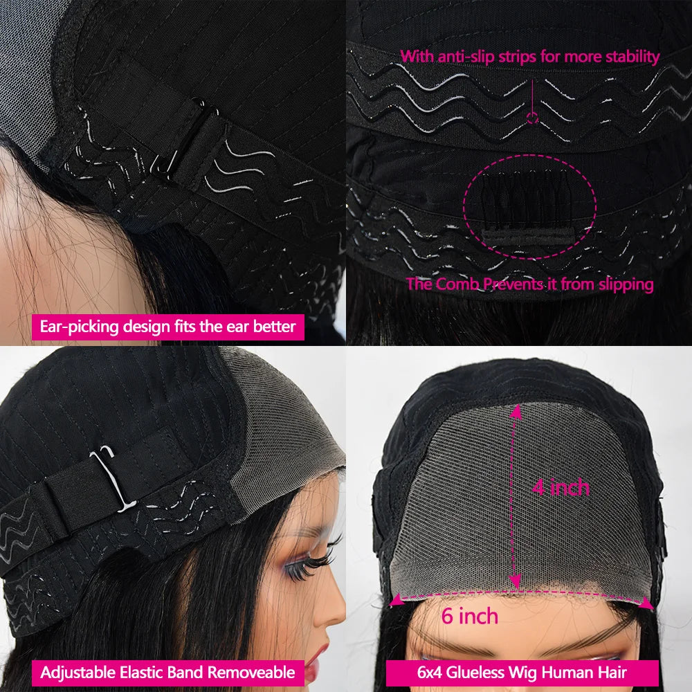 26 28 30Inch 6X4 Straight Glueless Wigs Human Hair Ready To Wear Go Human Hair Wigs Brazilian Pre Cut Closure Wig Human Hair Wig