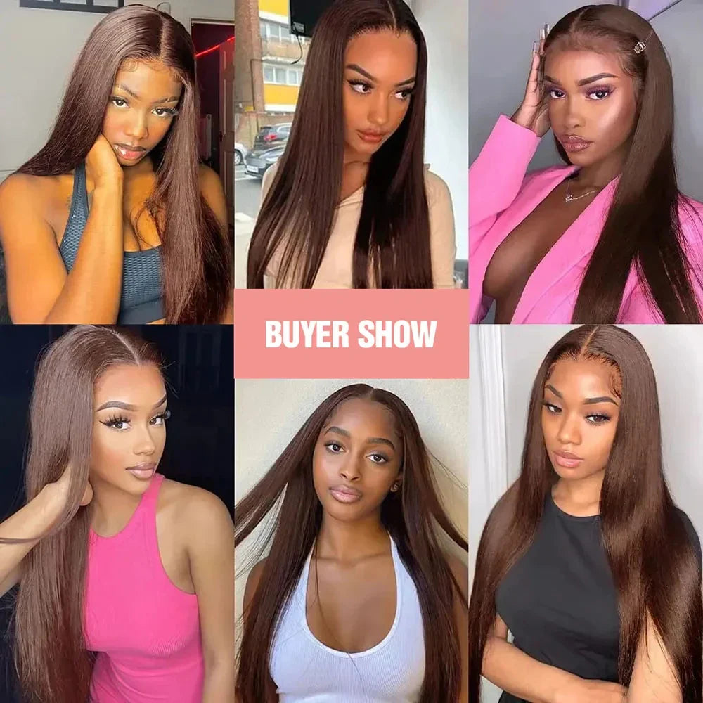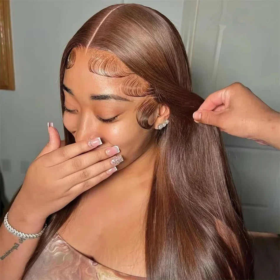 30 Inch Bone Straight Brazilian Human Hair Wig 100% 13x6 HD Lace Frontal Wig Chocolate Brown Lace Front Wigs For Black Women