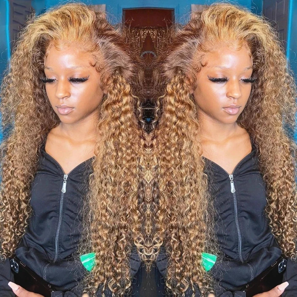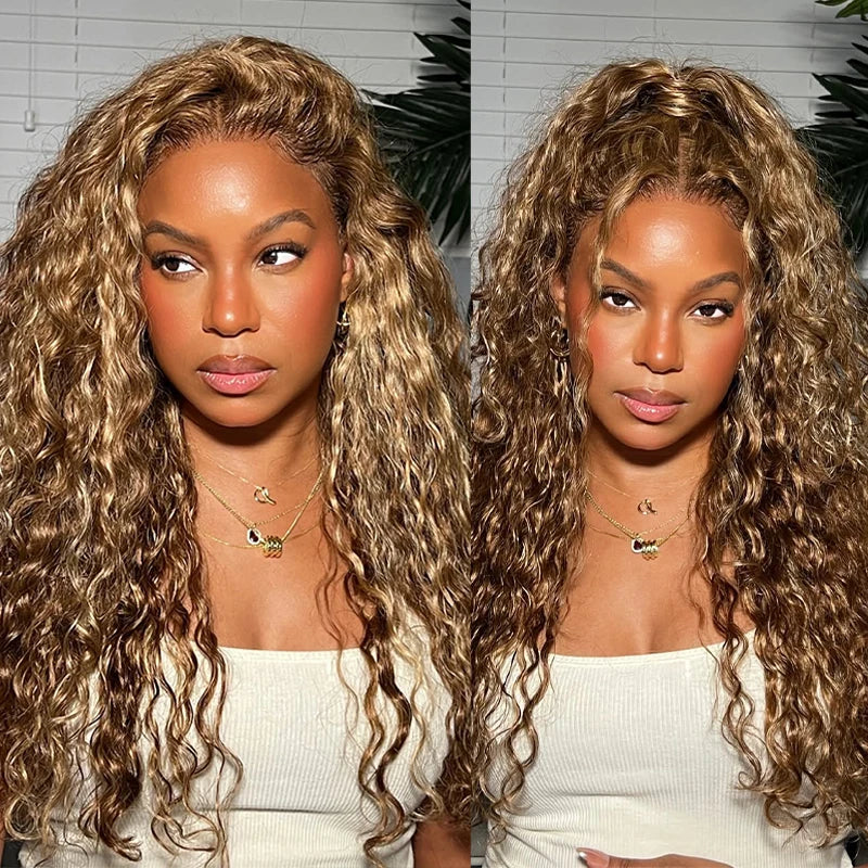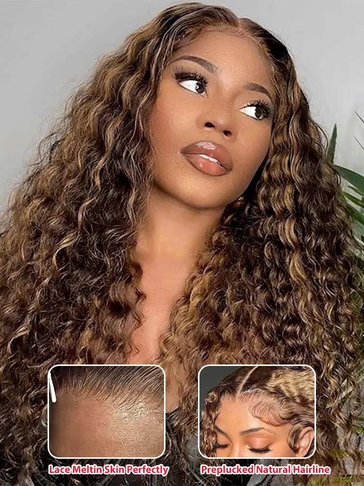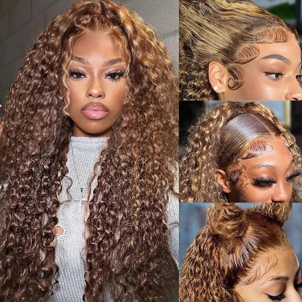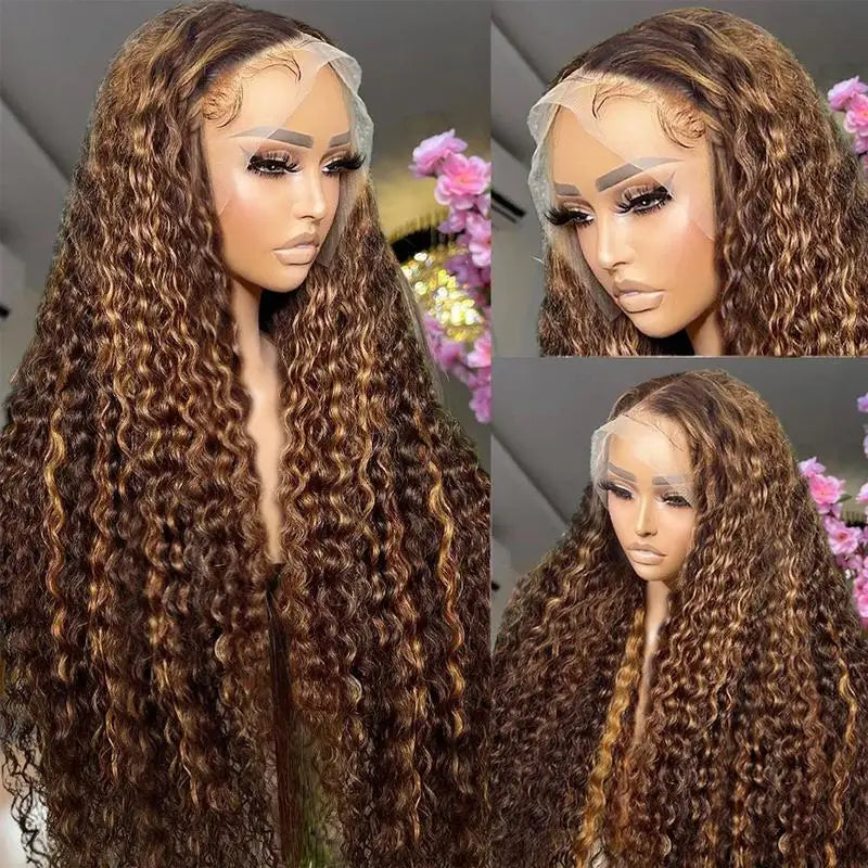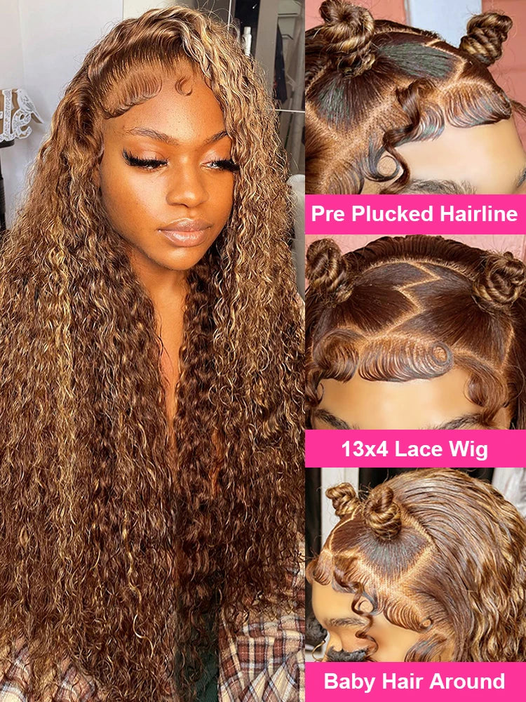 4/27 Curly Wigs 13x4 Highlight Deep Wave Wig Human Hair Ombre Honey Blonde Brown Colored Brazilian Water Wave Human Hair Wig