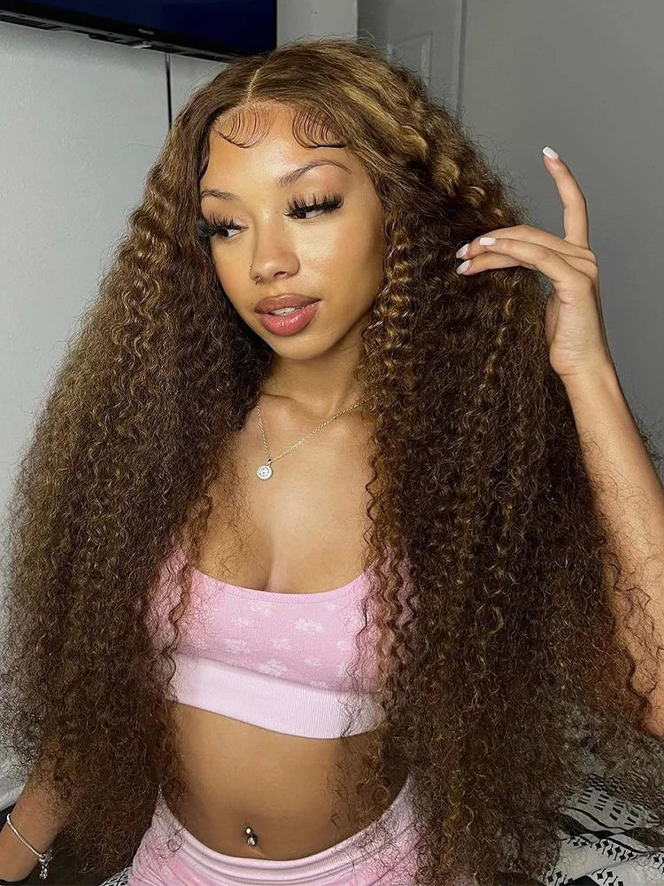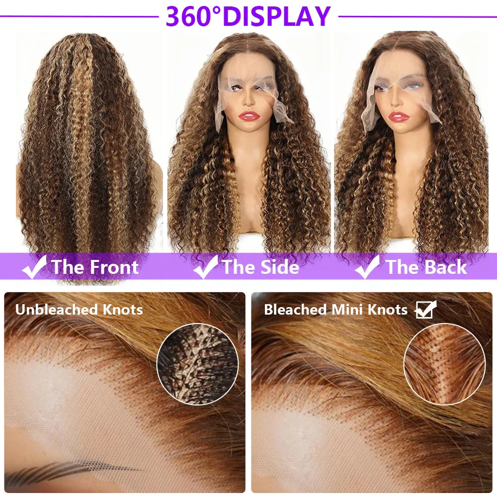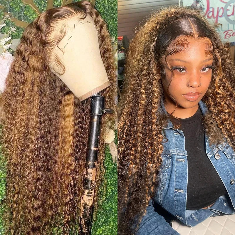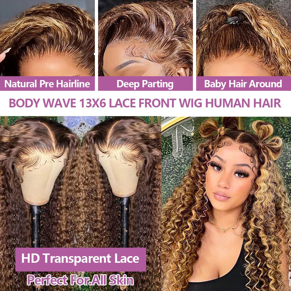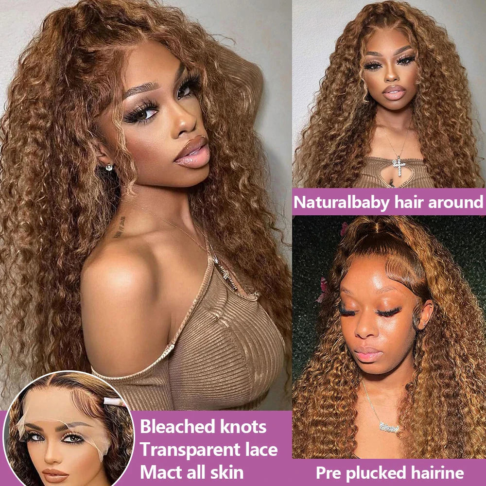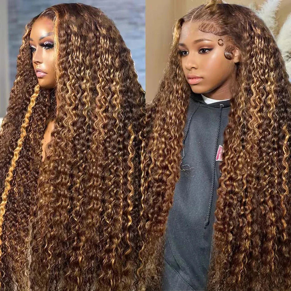 4/27 Curly Wigs 13x4 Highlight Deep Wave Wig Human Hair Ombre Honey Blonde Brown Colored Brazilian Water Wave Human Hair Wig