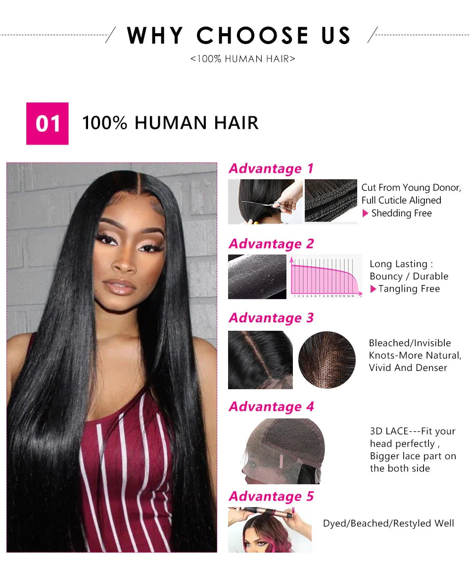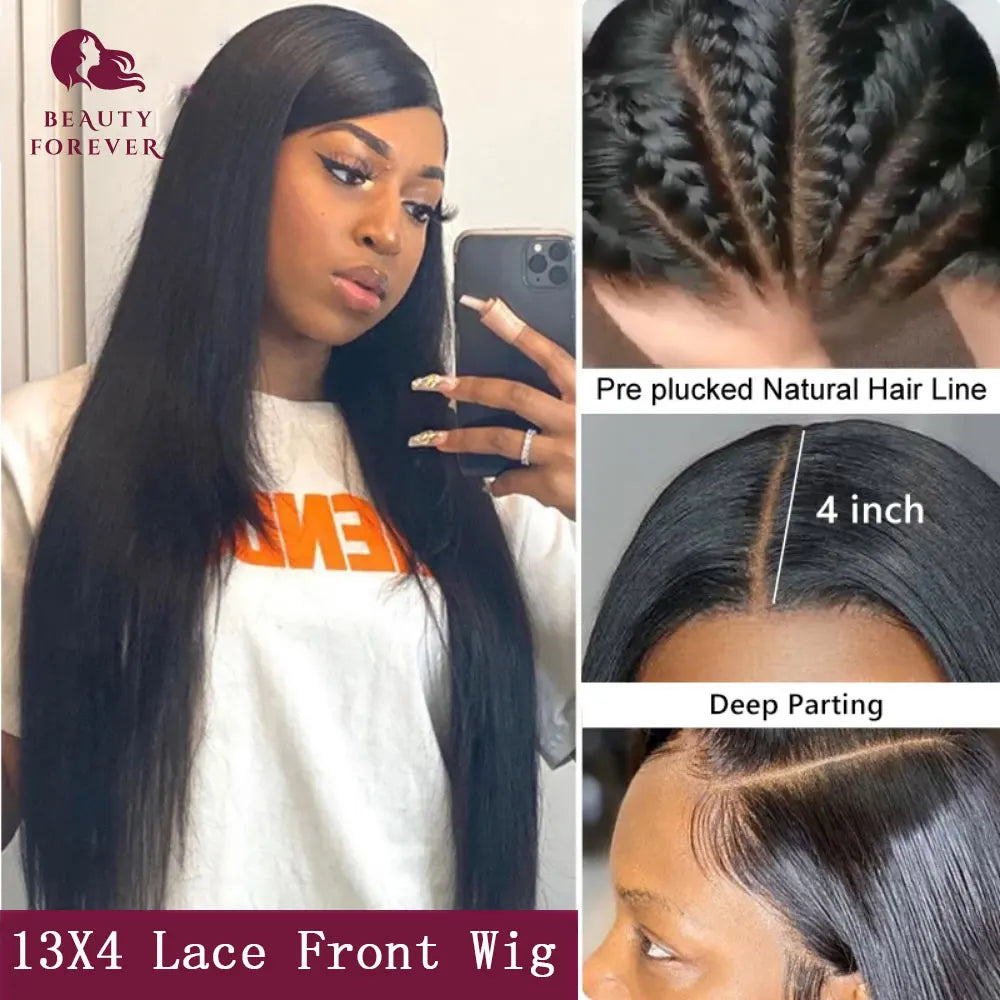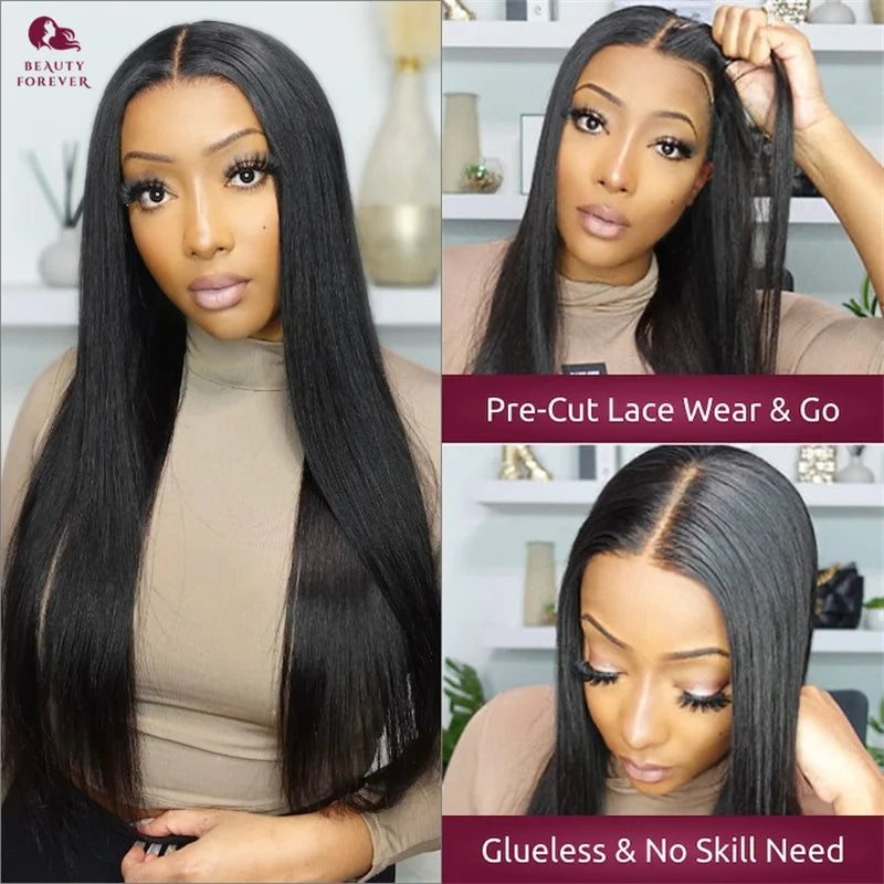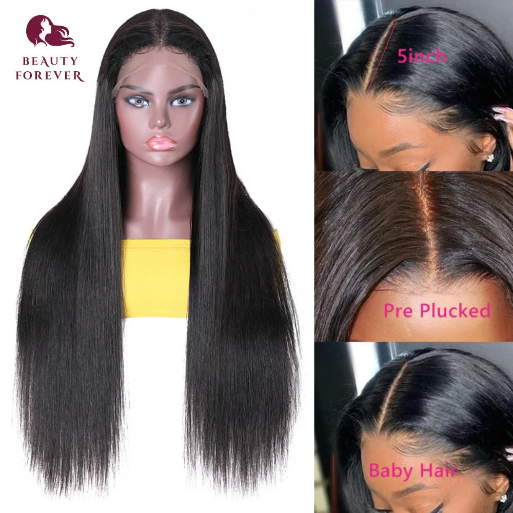 Beautyforever Glueless Straight Human Hair Wig Preplucked 13x4 Lace Front Human Hair Wig Brazilian 5x5 HD Lace Wig