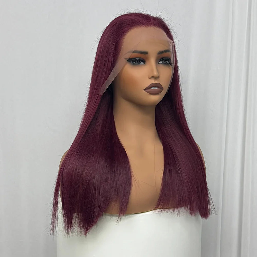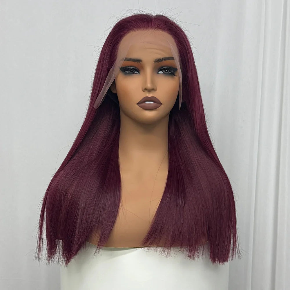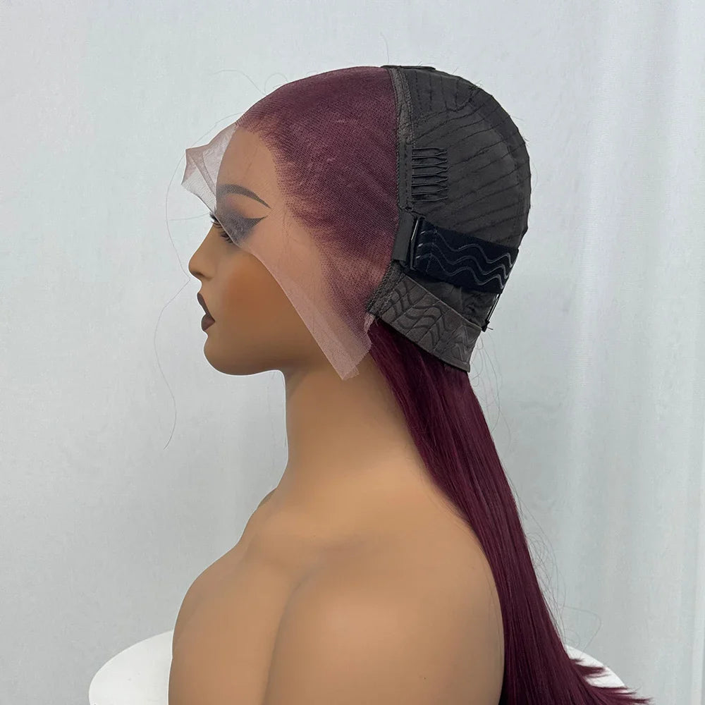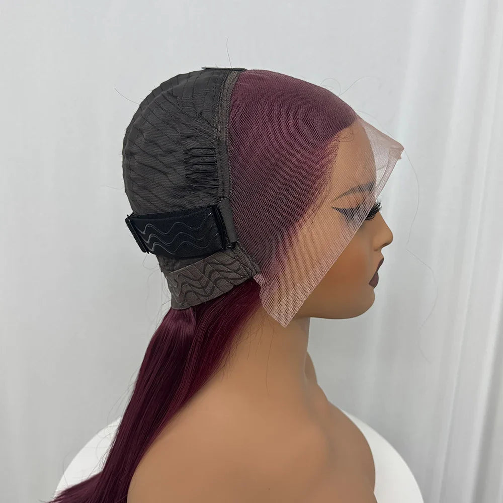 Bone Straight Human Hair Wig 350% Density 99J Glueless Lace Wigs Double Drawn 12A Hair 13x4 HD Lace Frontal Wigs