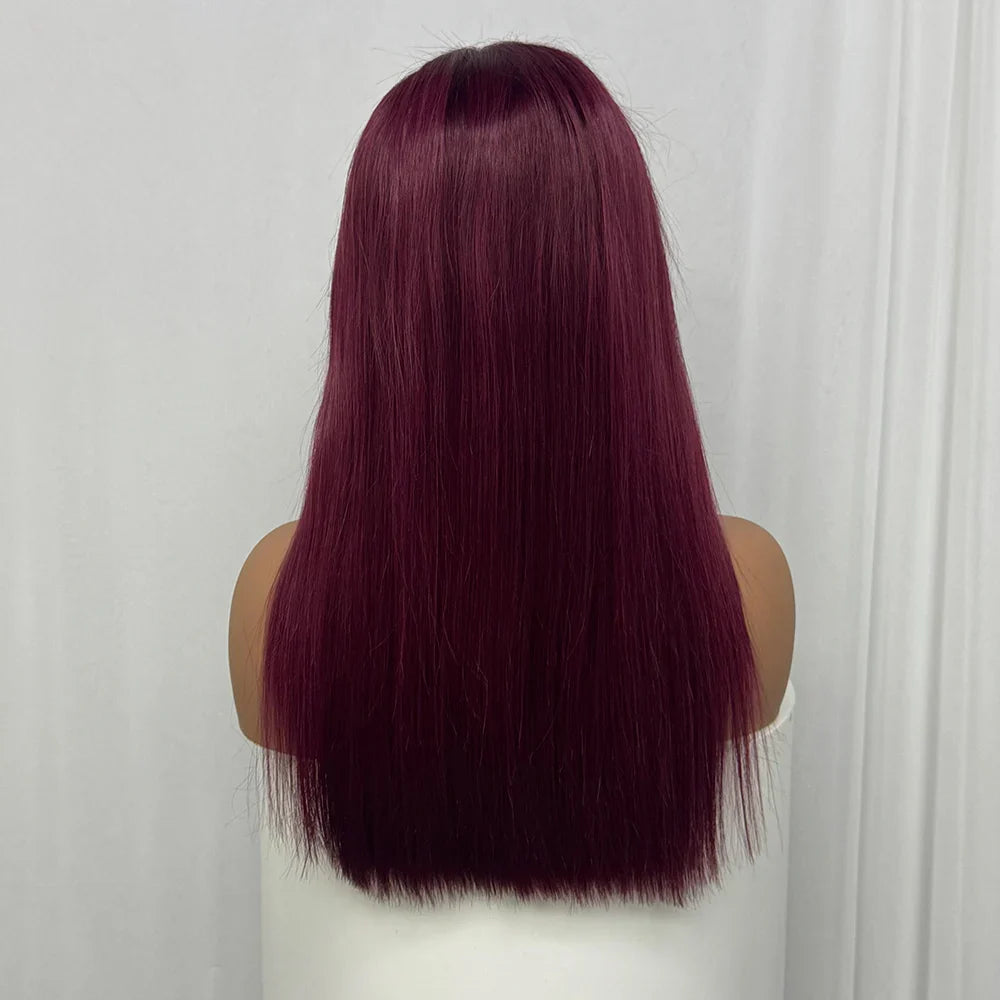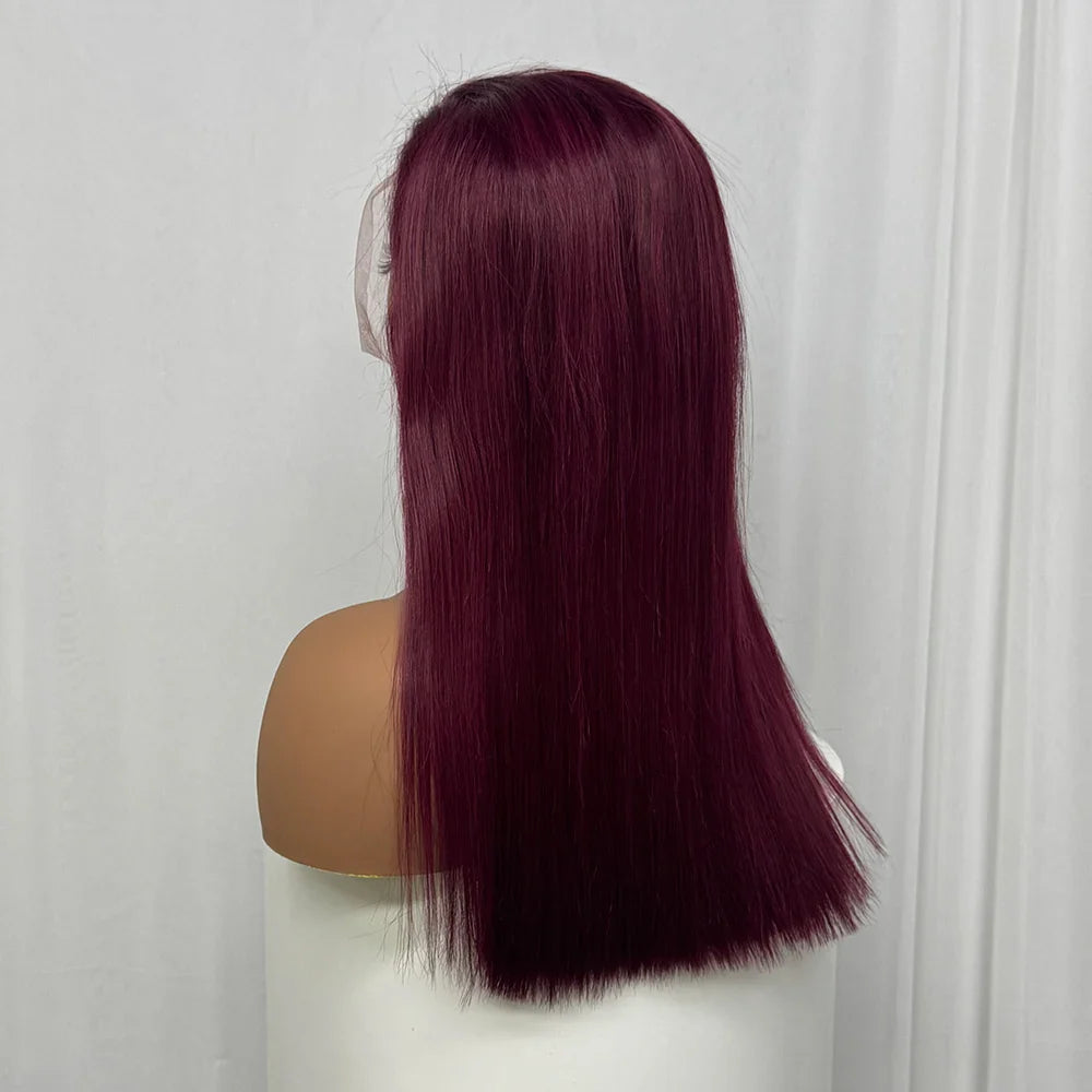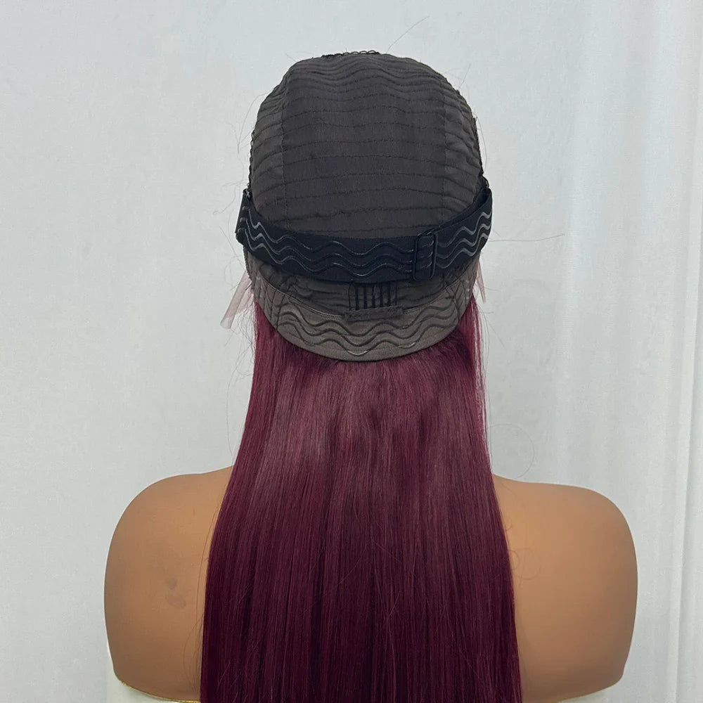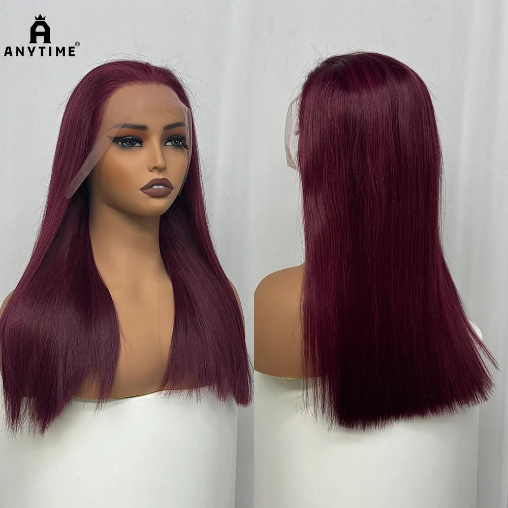 Bone Straight Human Hair Wig 350% Density 99J Glueless Lace Wigs Double Drawn 12A Hair 13x4 HD Lace Frontal Wigs