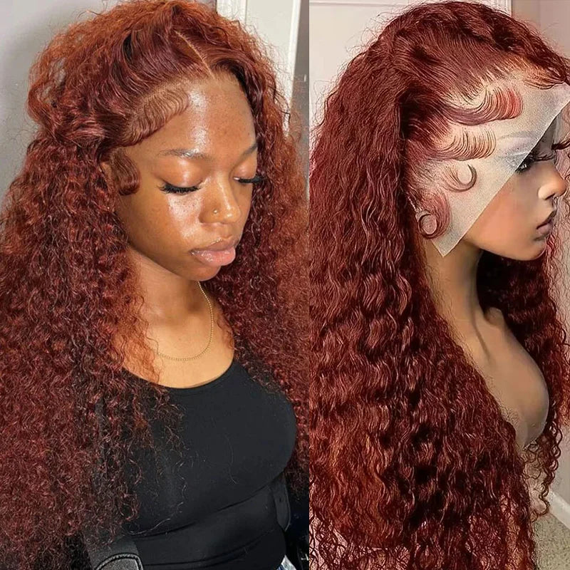 Deep Curly Wigs Human Hair Reddish Brown 13x4 13x6 Hd Lace Frontal Wig Colored Water Wave Lace Front Wig for Women 30 36 40 Inch