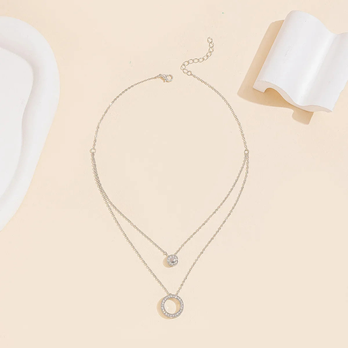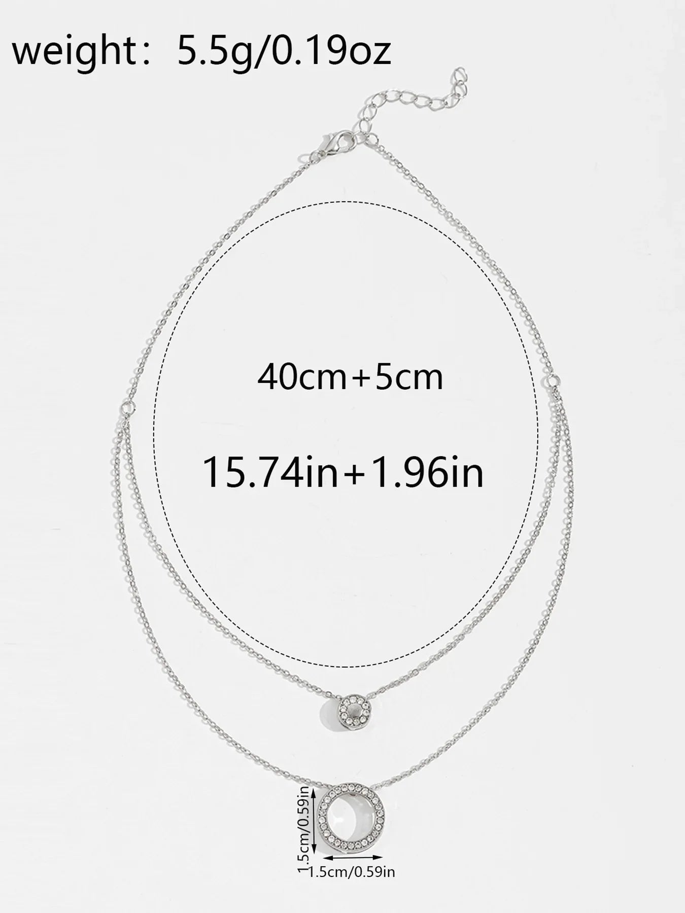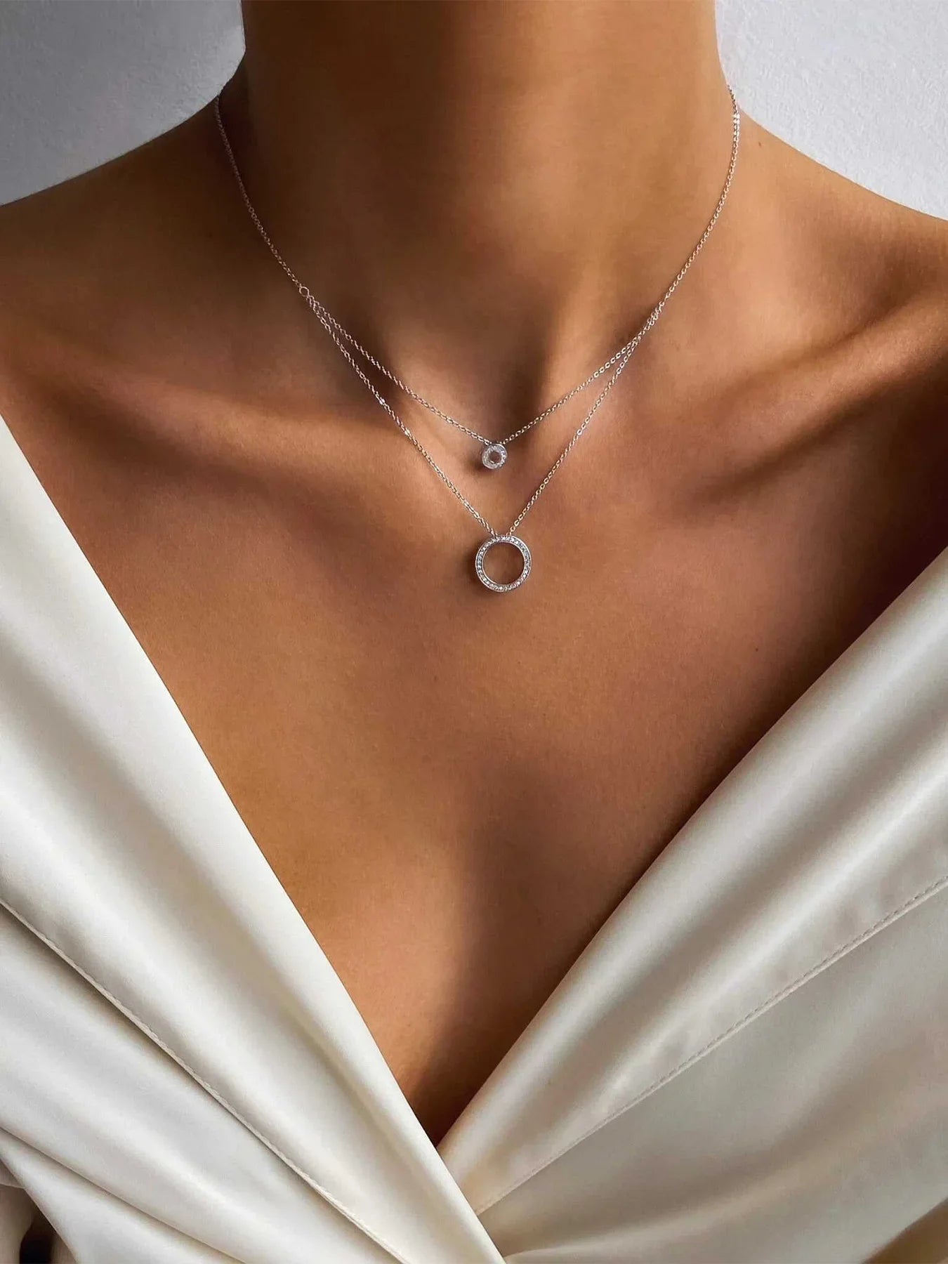 Delicate Layered Necklace Set with Sparkling Round Pendant Dainty Collarbone Chains for Women Minimalist Style