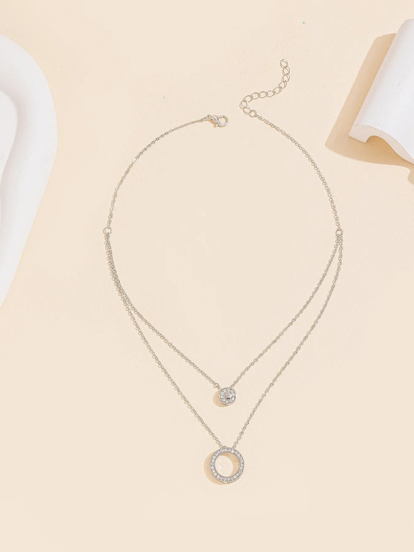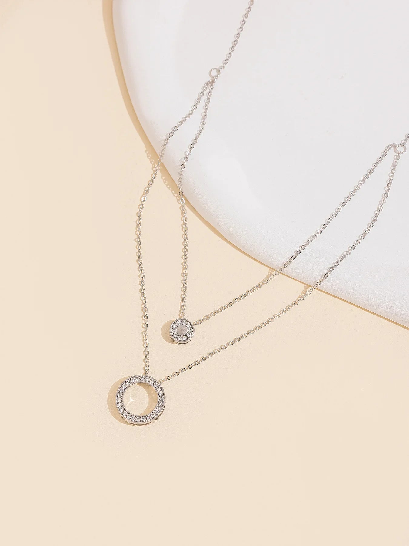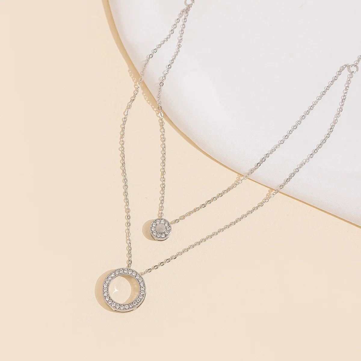 Delicate Layered Necklace Set with Sparkling Round Pendant Dainty Collarbone Chains for Women Minimalist Style