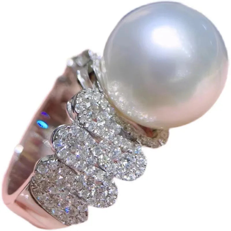 Elegant and Round Natural Large Pearl Ring with Personalized Design for Women, Adjustable Opening for Jewelry, Lover's Gift