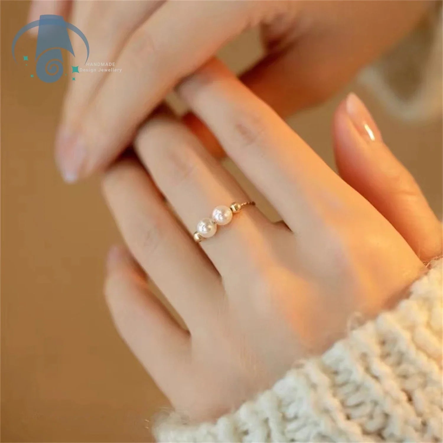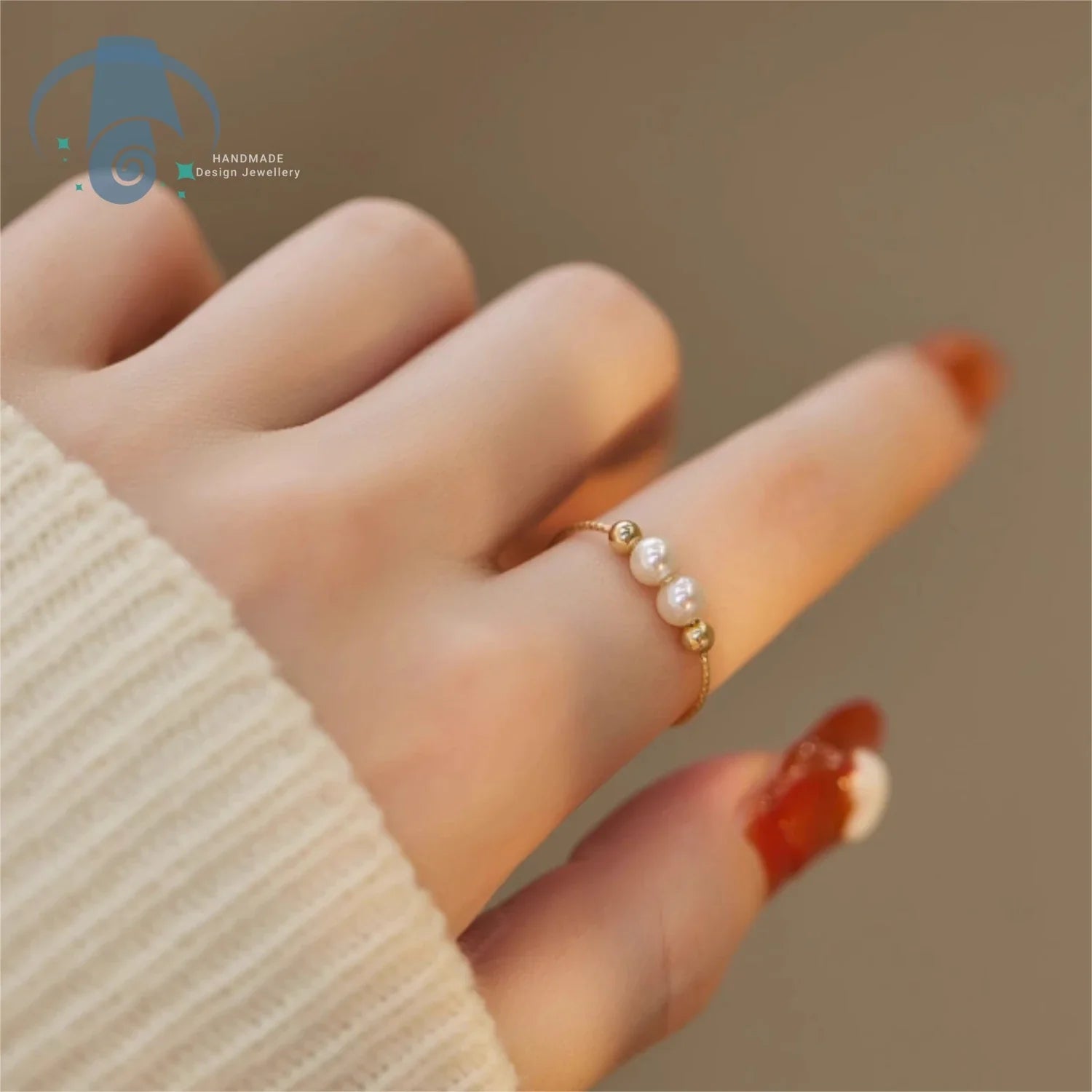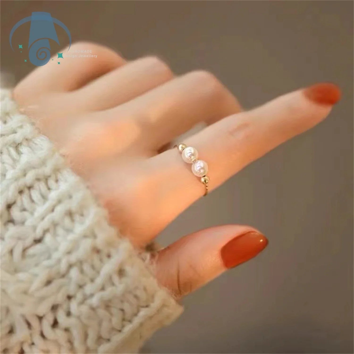 Elegant Minimalist Pearl Ring for Women Adjustable Open Band Simple Dainty Pinky Ring Luxury Trendy Stackable Jewelry Gift Idea