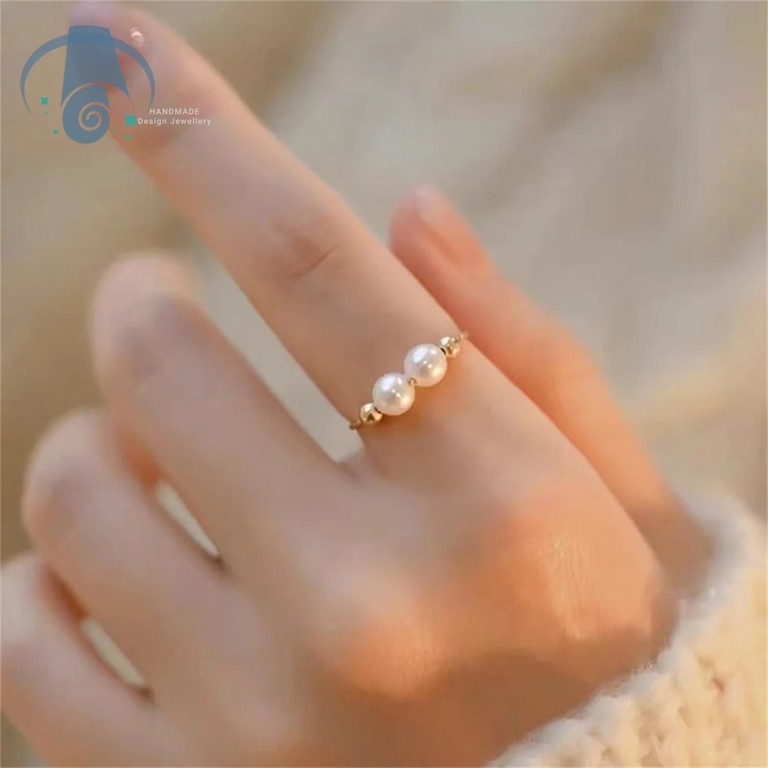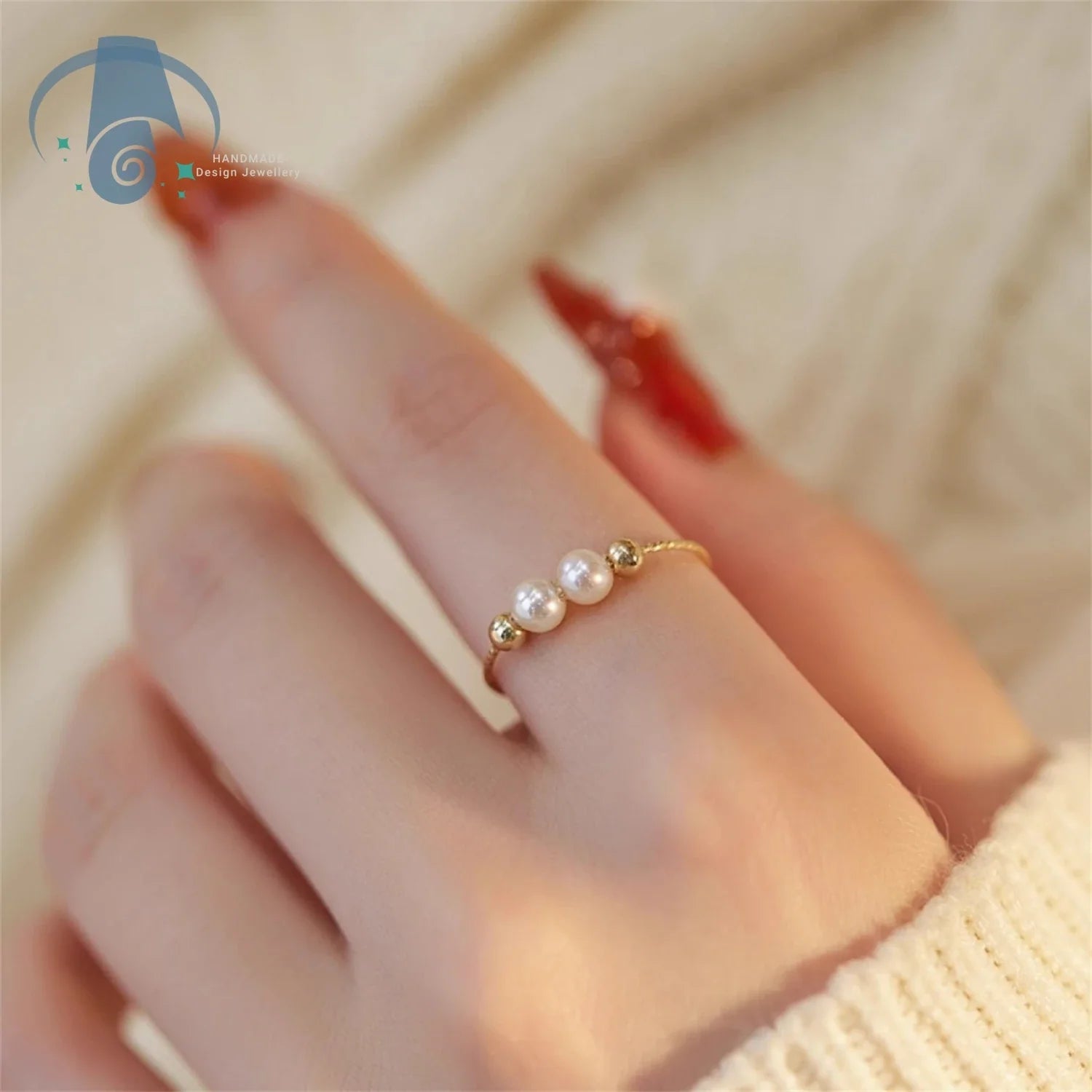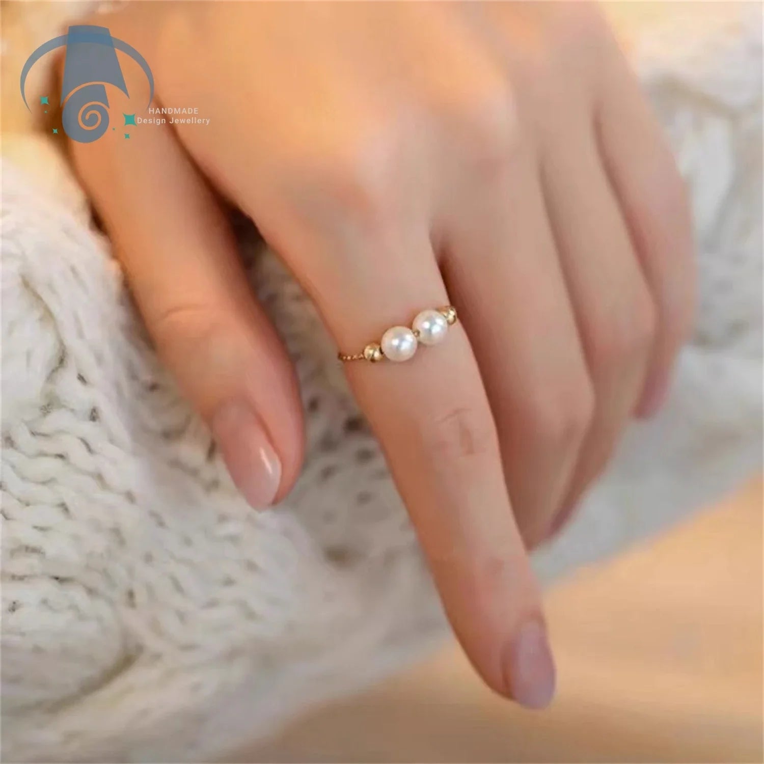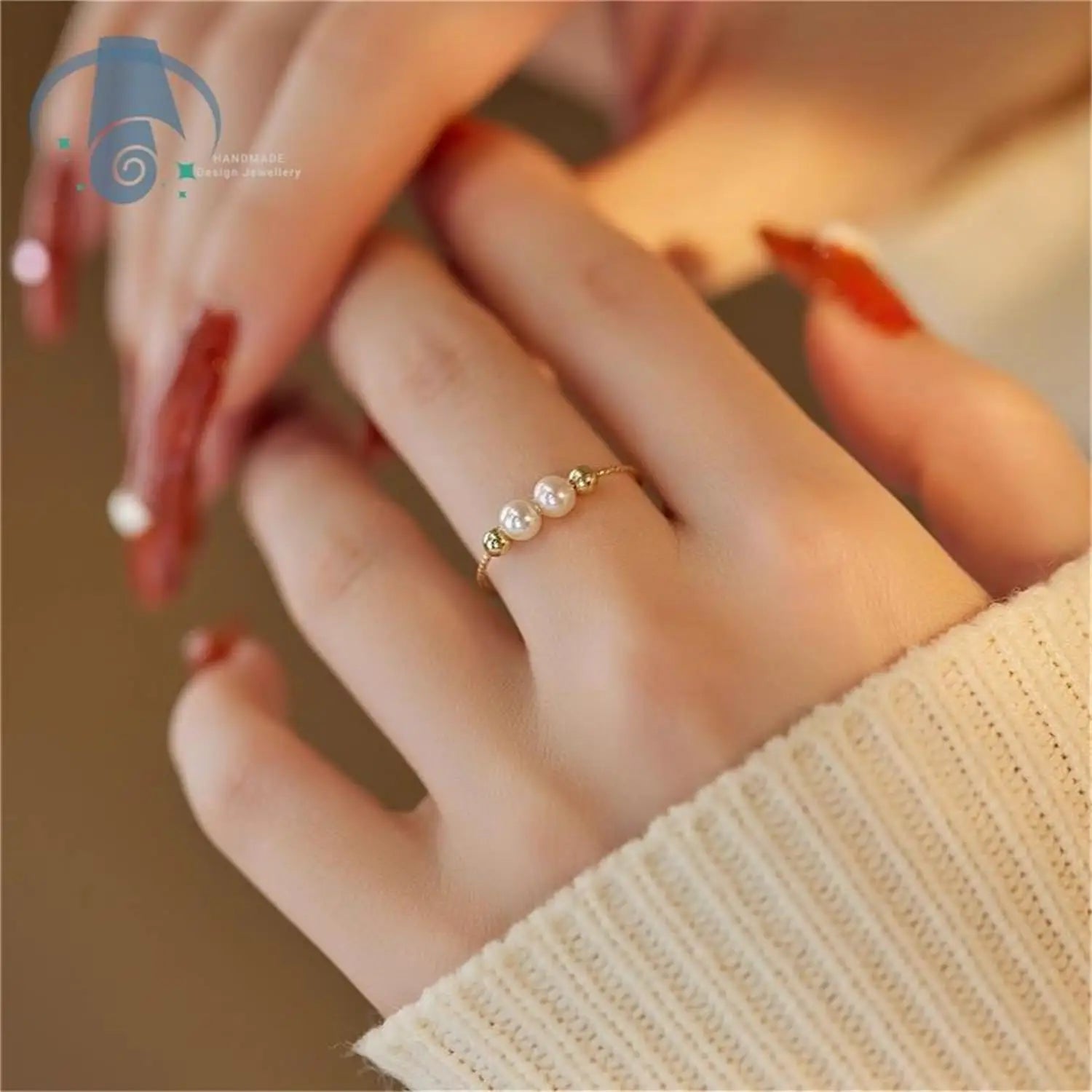 Elegant Minimalist Pearl Ring for Women Adjustable Open Band Simple Dainty Pinky Ring Luxury Trendy Stackable Jewelry Gift Idea