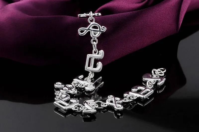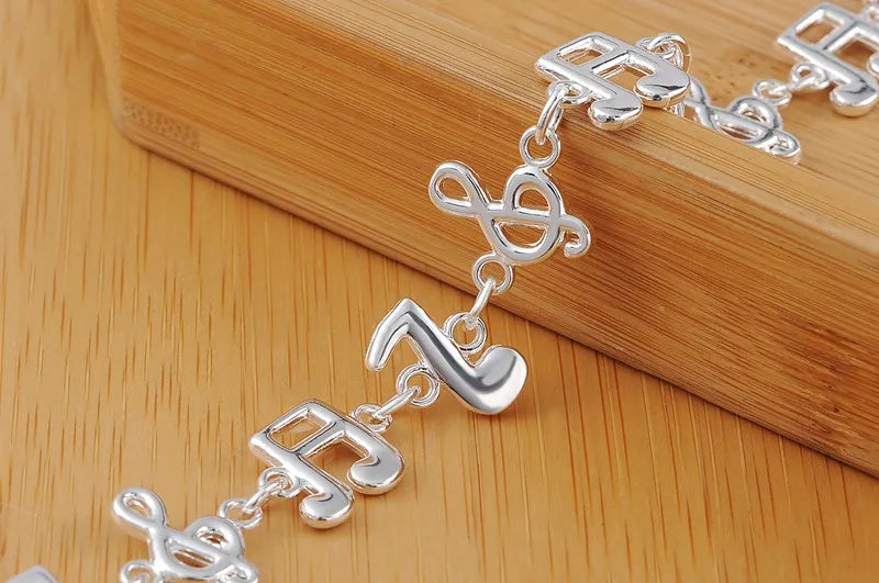 Hot fine musical note chain 925 Sterling Silver Bracelets for women Wedding party girl student Christmas Gifts fashion Jewelry