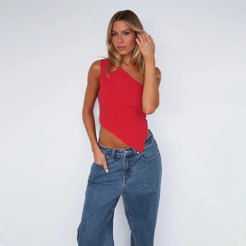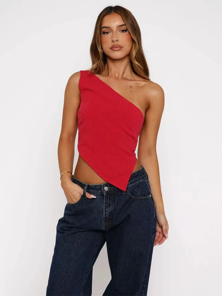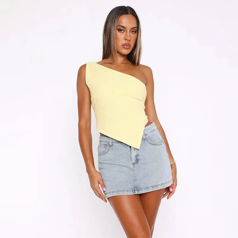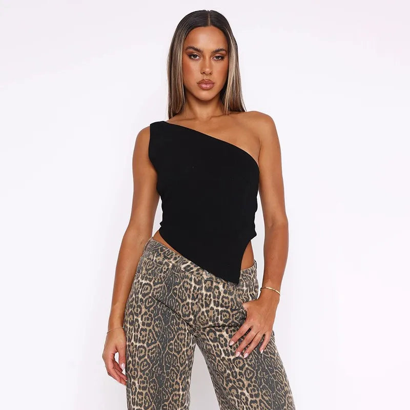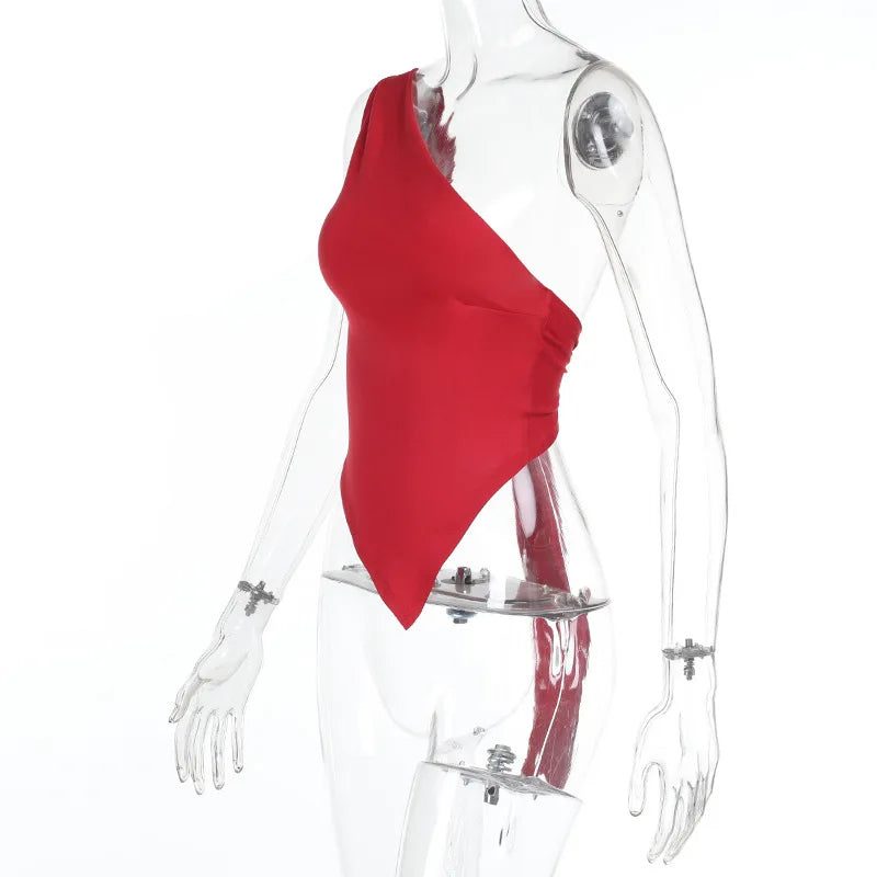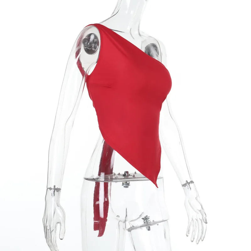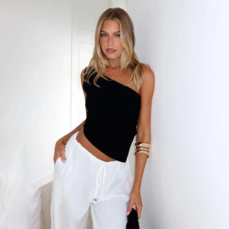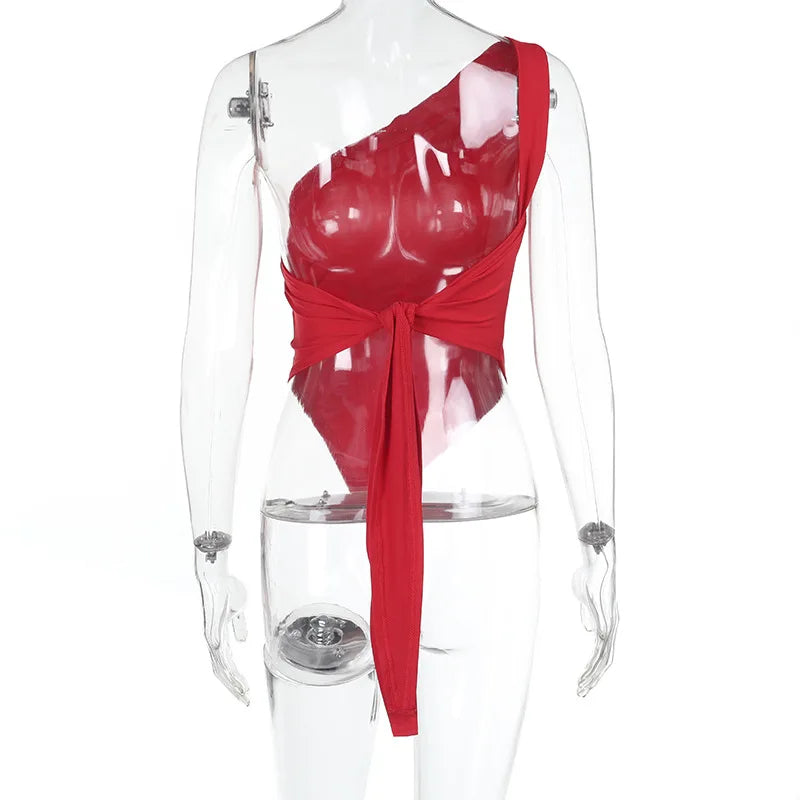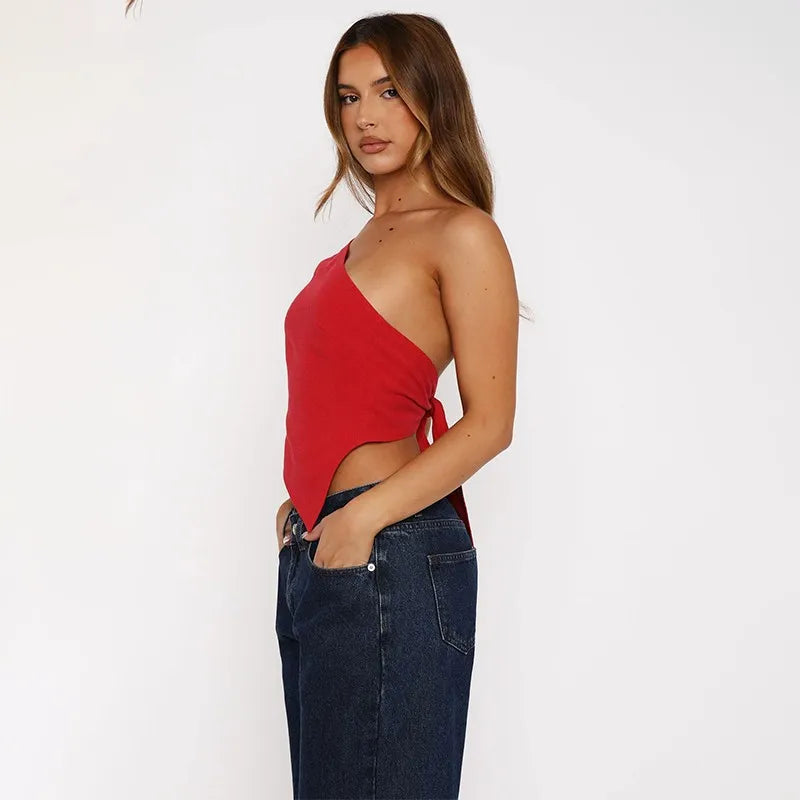 Inclined Shoulder Halter Top Asymmetrical Crop Tops Bandage Y2k Clothes Backless Hot Tops For Women Streetwear Tie Back Corset