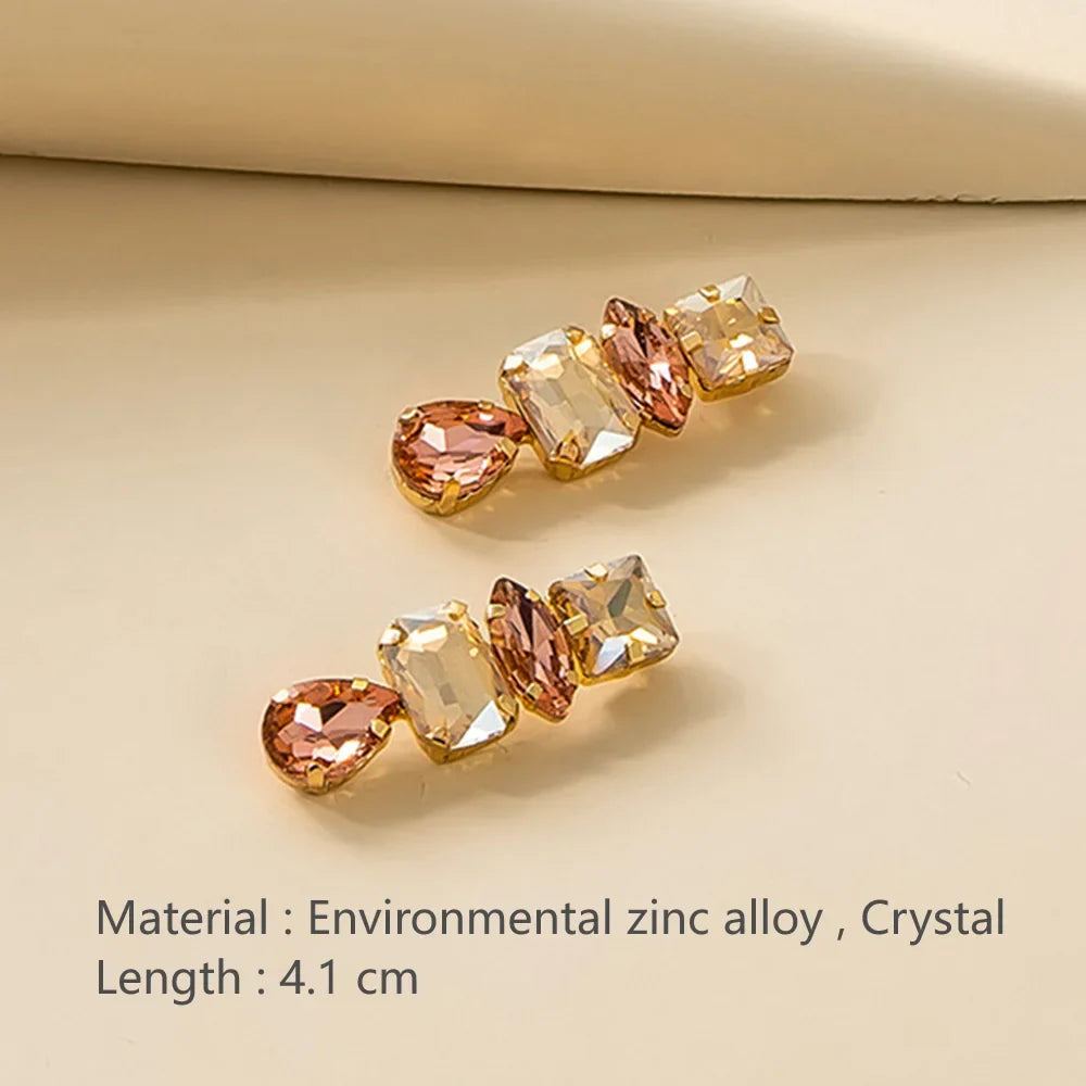 Luxury Crystal Drop Earrings for Women Geometric Champagne Peach Rhinestone Elegant Daily Wear Chic Fashion Jewelry