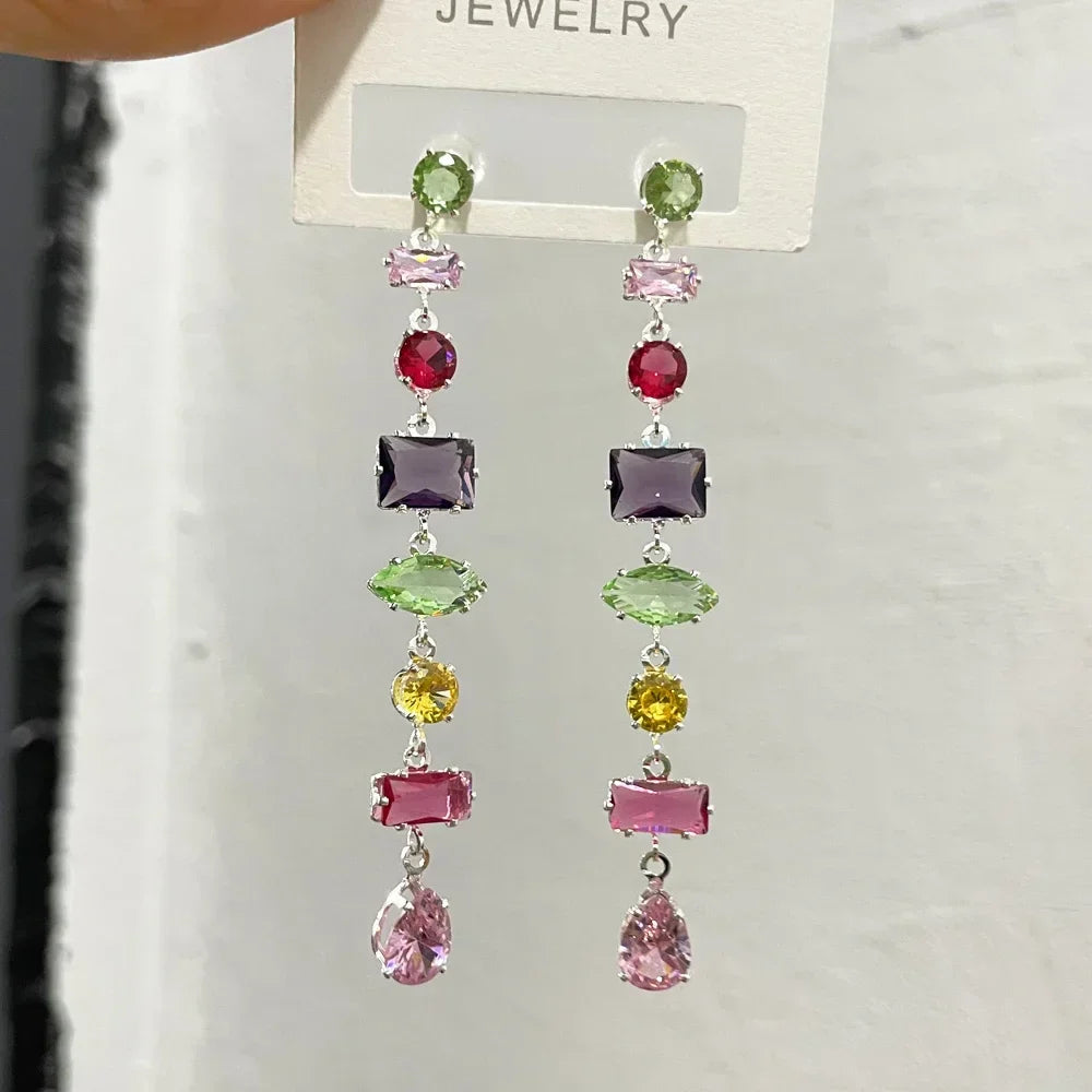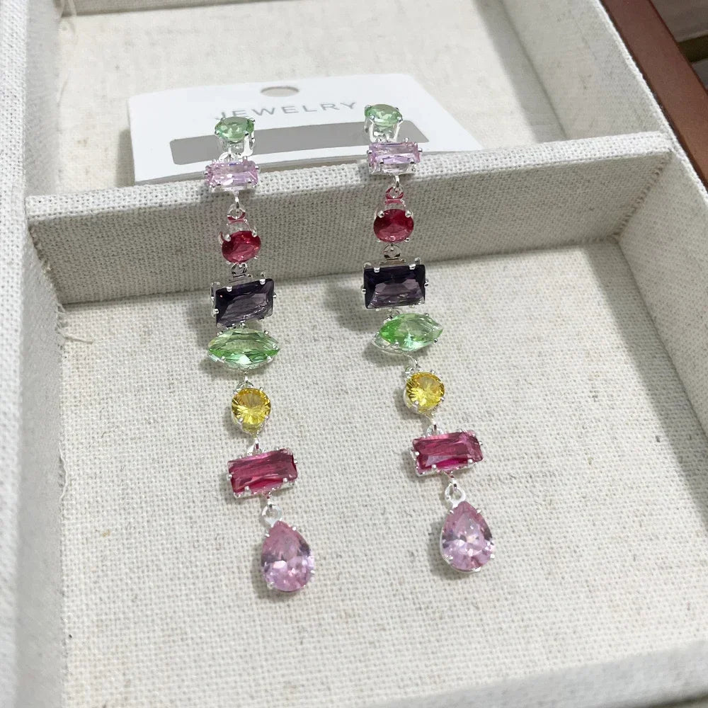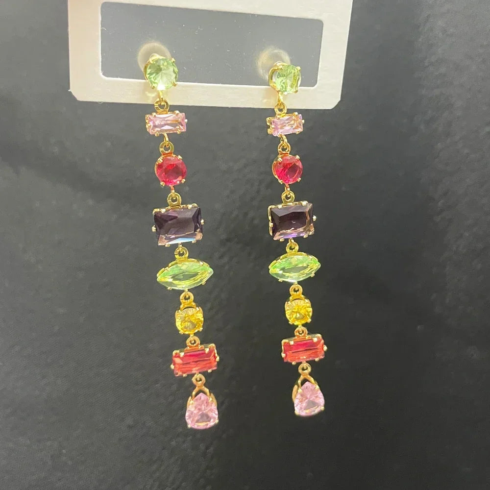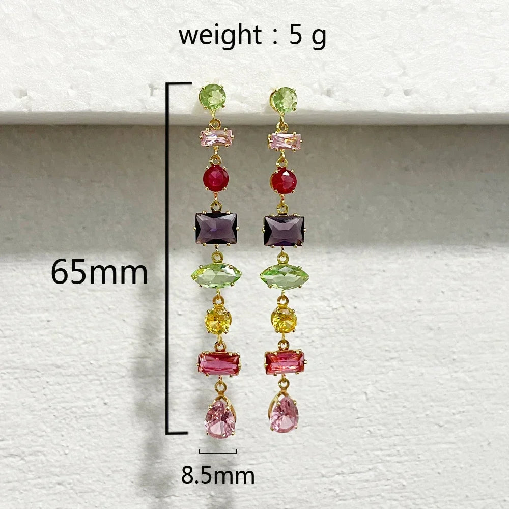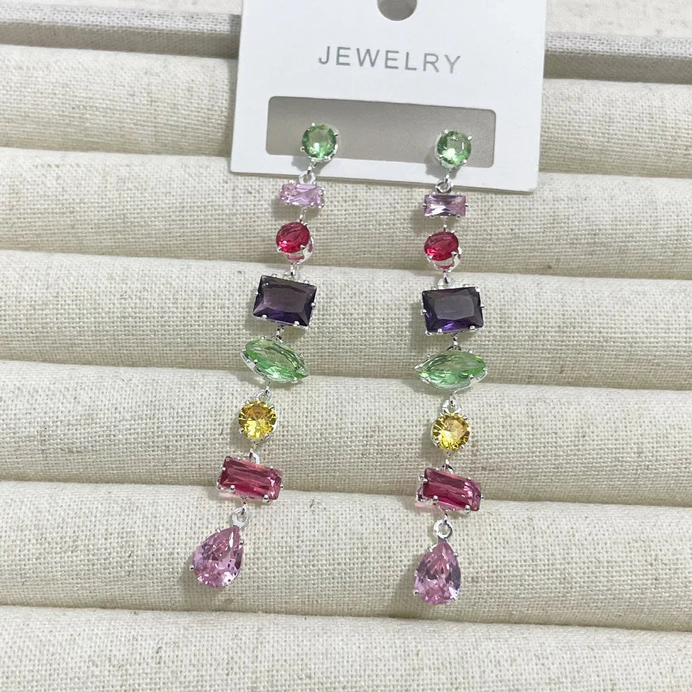 Item Name: Rainbow CZ Long Earrings For Women