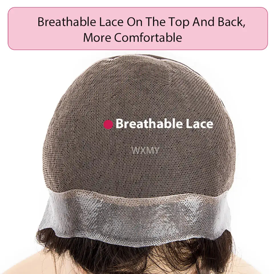 Pu Around With Knotted Breathable Lace In The Center Human Hair Wigs For Women Real Natural Hair Wig 12-22Inch Long Women Wig