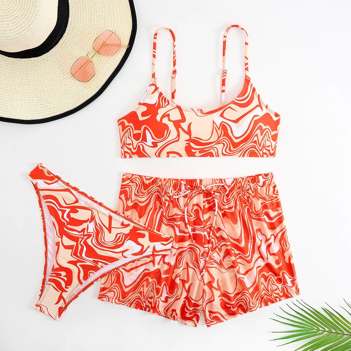 Sexy Bikini 2025 Women 3 Pieces Swimwear Female High Waist Swimsuit Orange Bathers Swimming Bathing Swim Suit Summer Beachwear