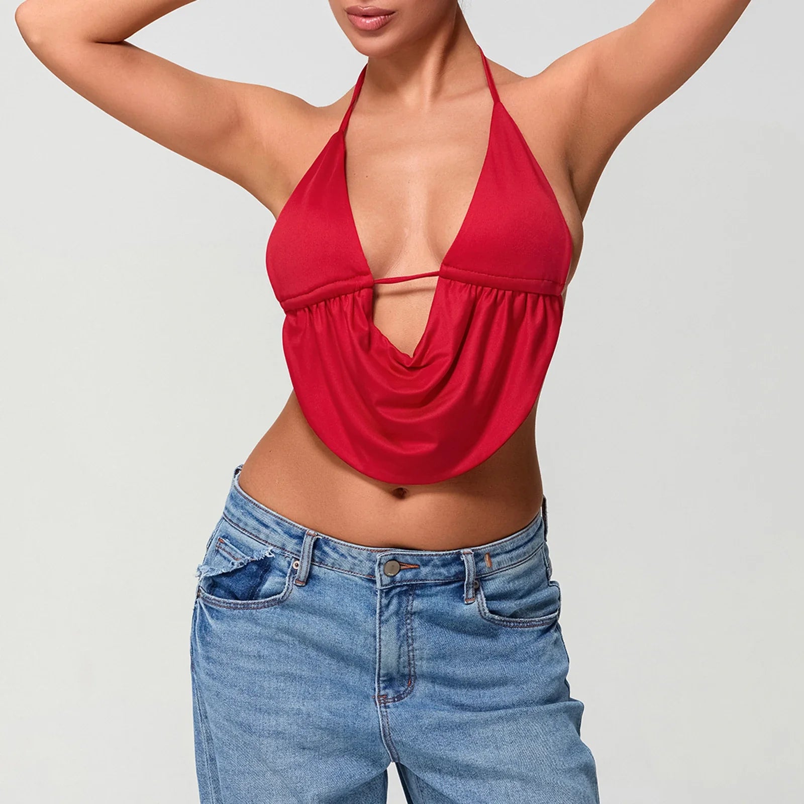 Sexy Deep V Neck Halter Tops for Women Sleeveless Tie Back Asymmetrical Hem Camisole Y2k Low Cut Backless Tank TopS