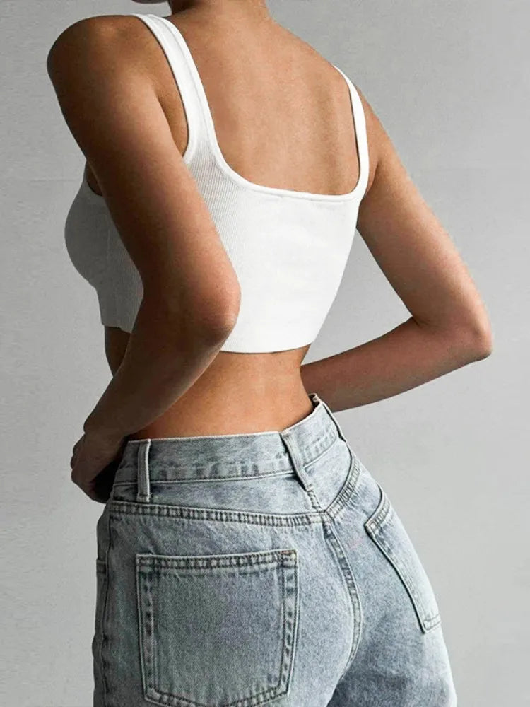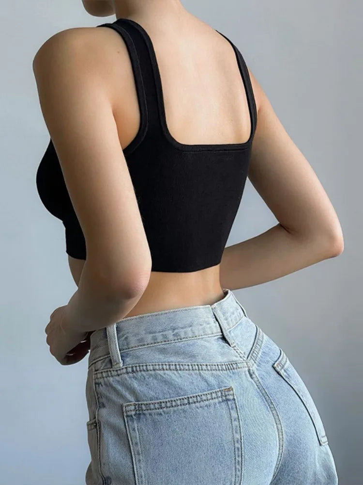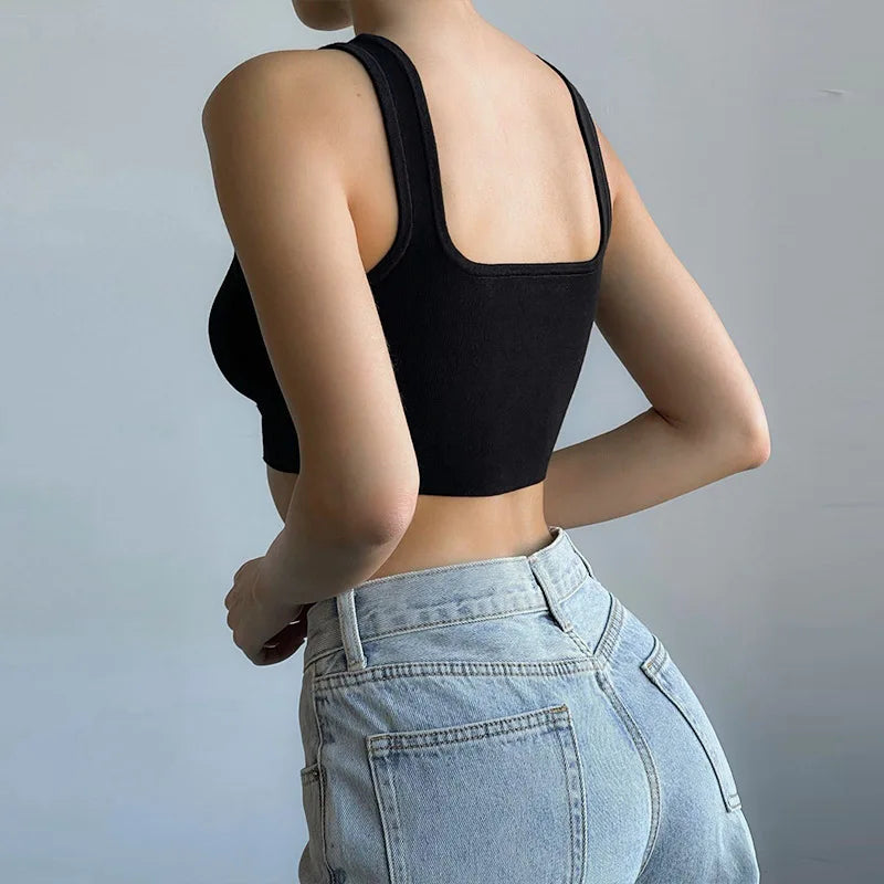 Solid White Tank Top Women Summer Clothes Square Collar Bottom Corset Sleeveless Y2k Accessories Cute Ropa De Mujer Streetwear
