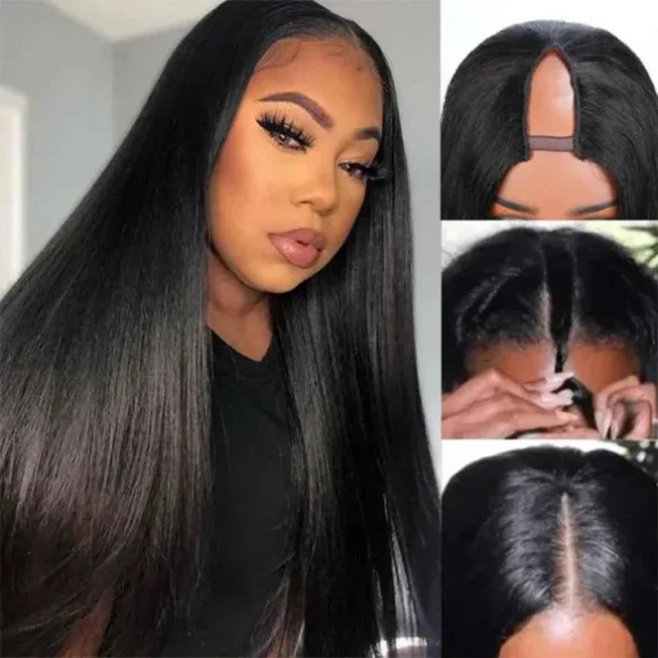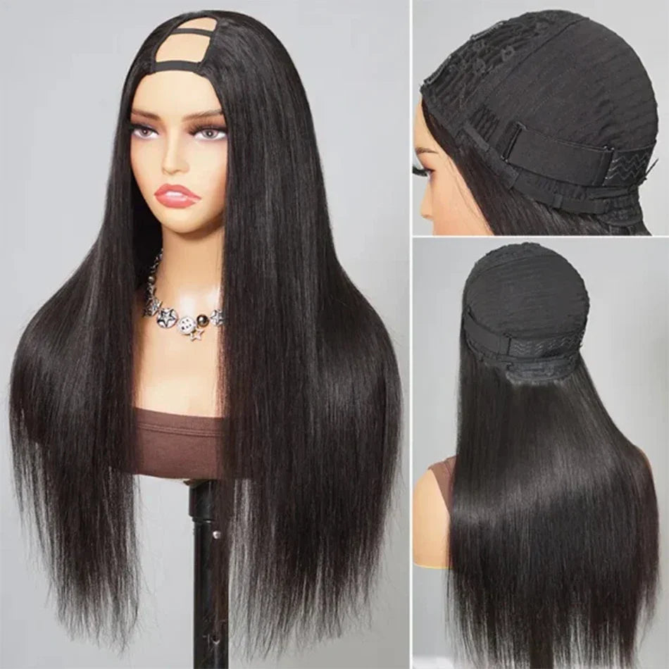 Straight U Part Wig Human Hair No Leave Out No Glue Brazilian Glueless Bone Straight Human Hair Wigs for Women 180% Density