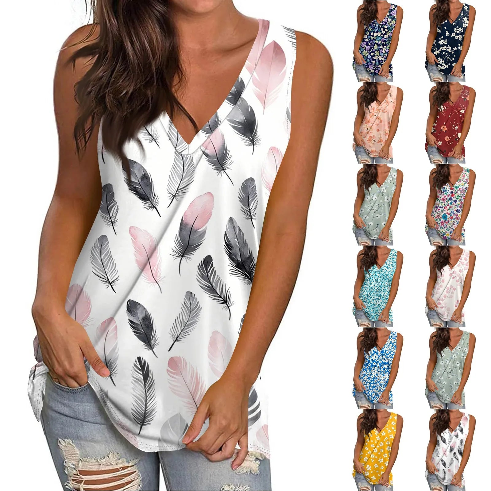 Tank Tops for Women 2025 Summer Sleeveless V Neck Blouses Plus Size Cotton Shirts Casual Vest Tops Beach Clothes Womens Pullover