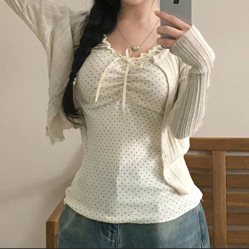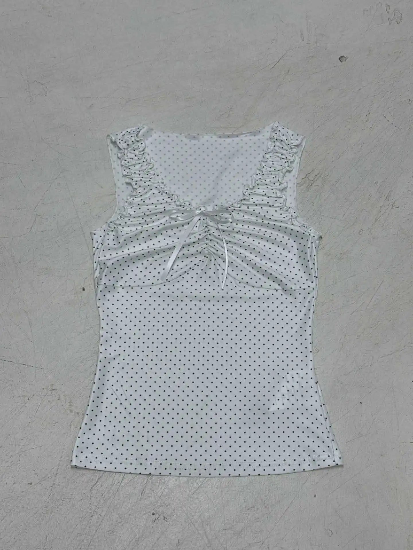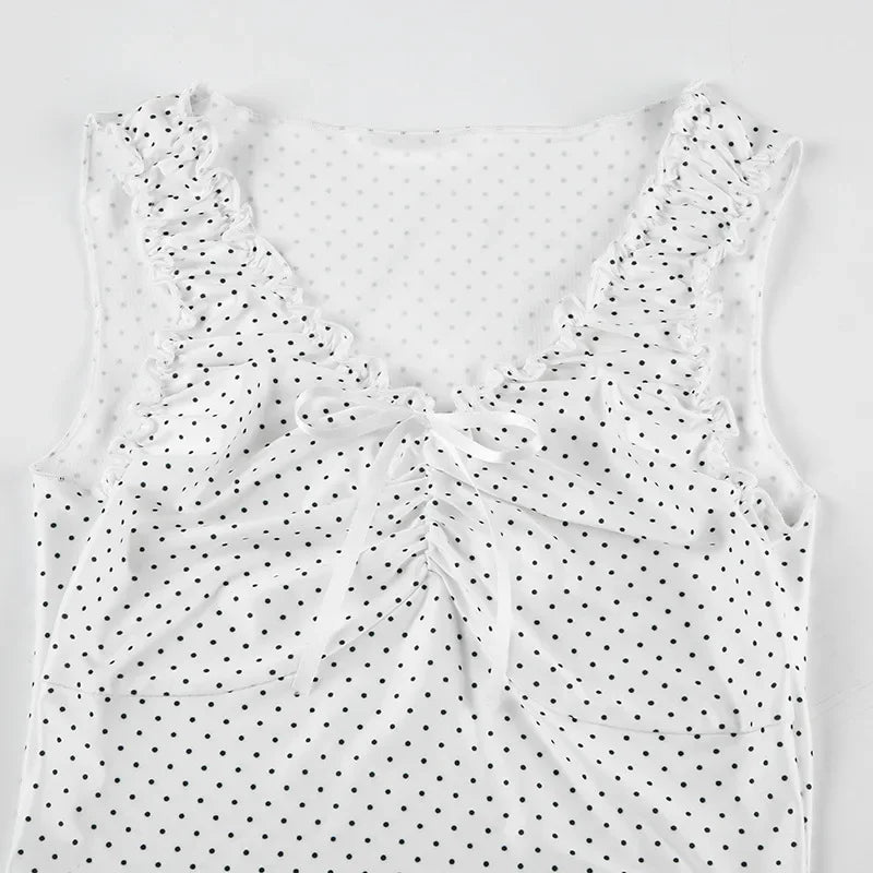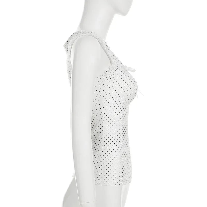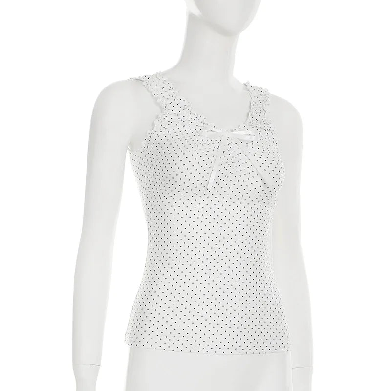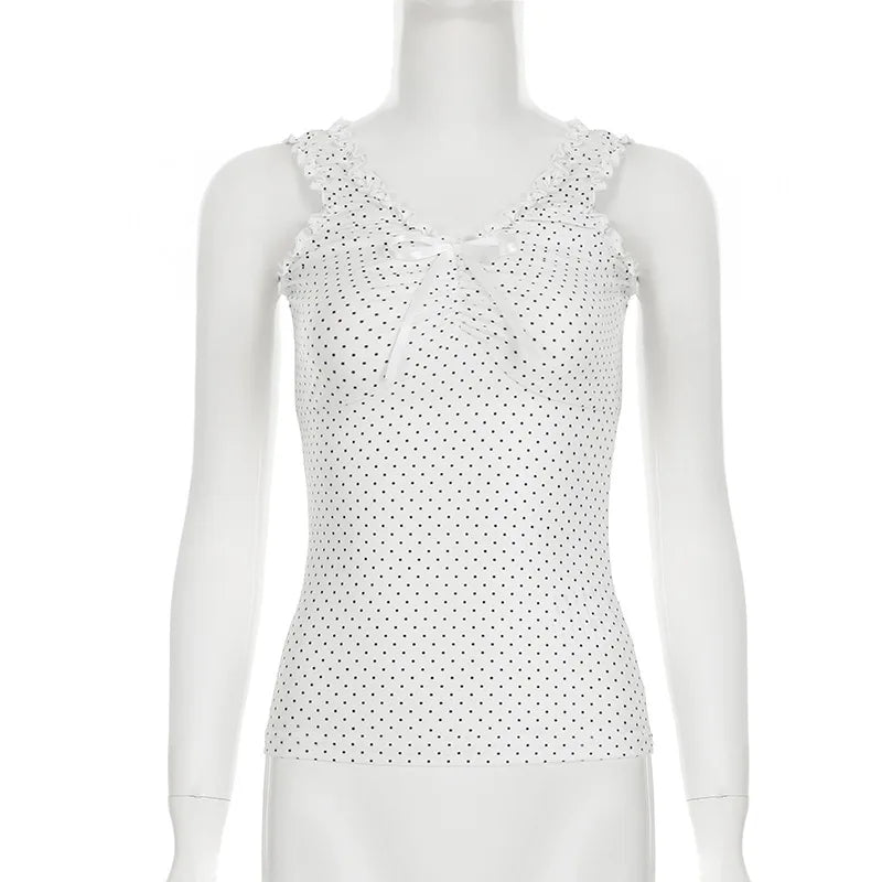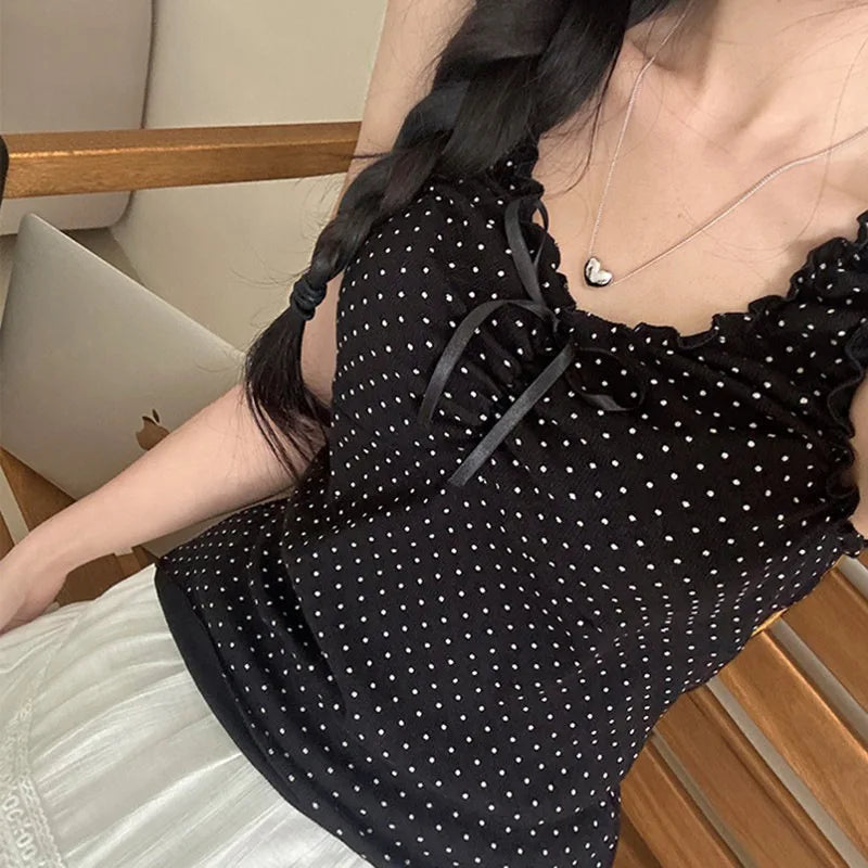 Tank Tops for Women New Summer 2025 Bow Black Sexy V Neck Cotton Sleeveless Cropped Vests Vintage Sweet Ruffles Slim Crop Top