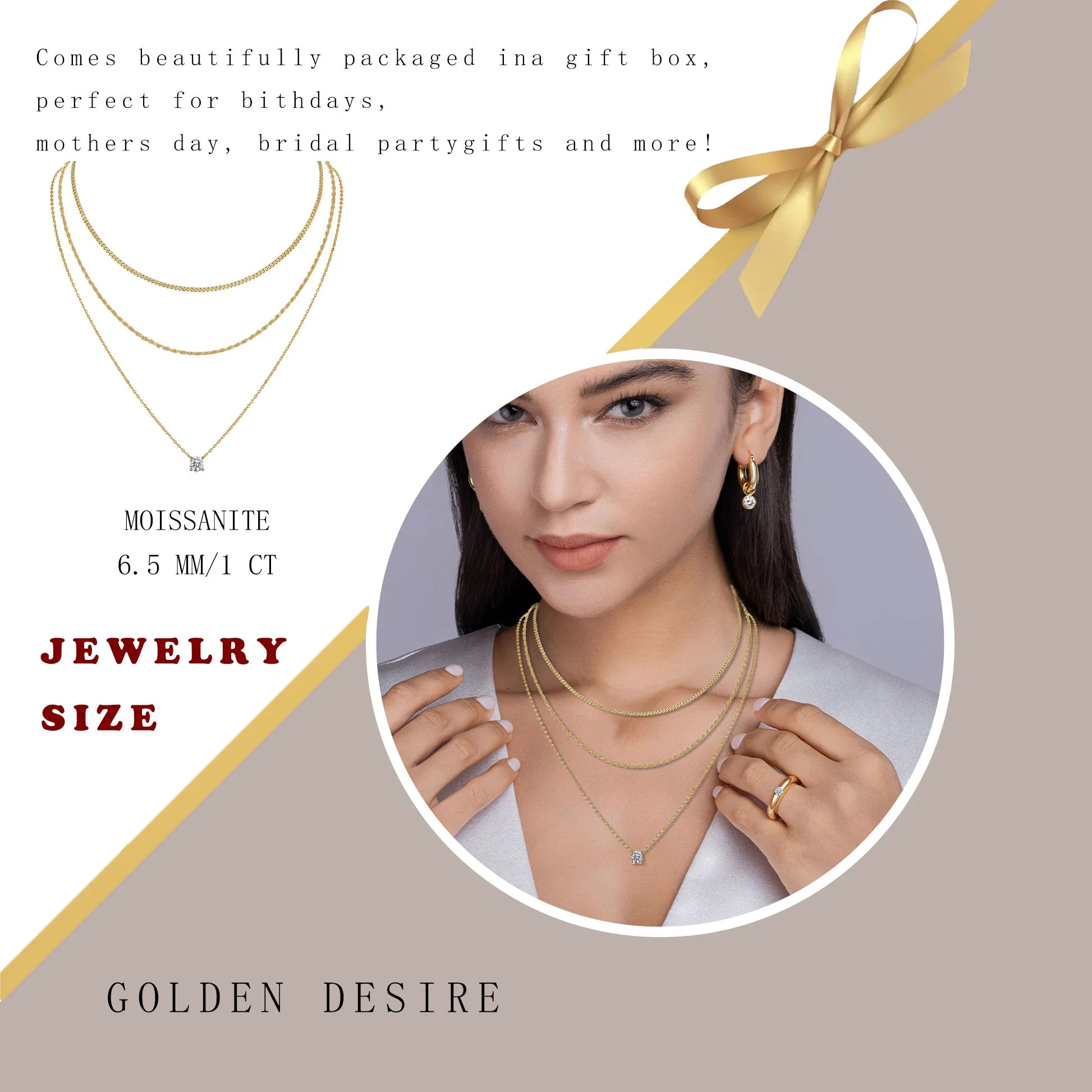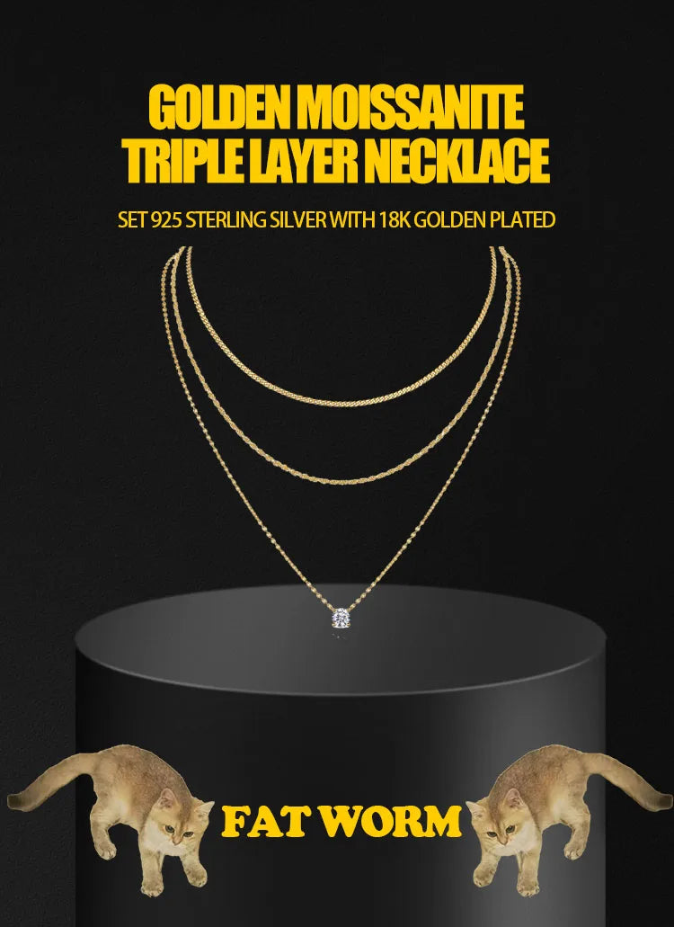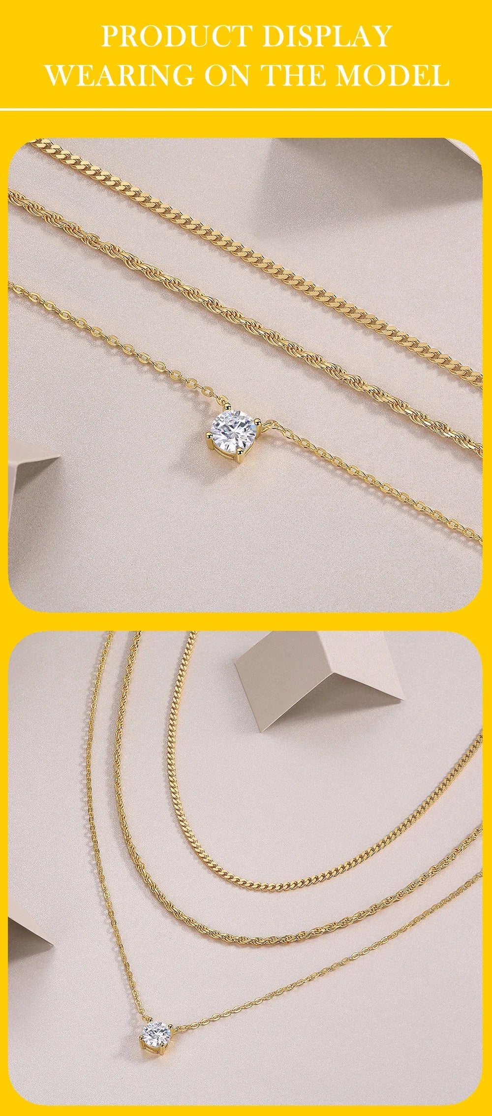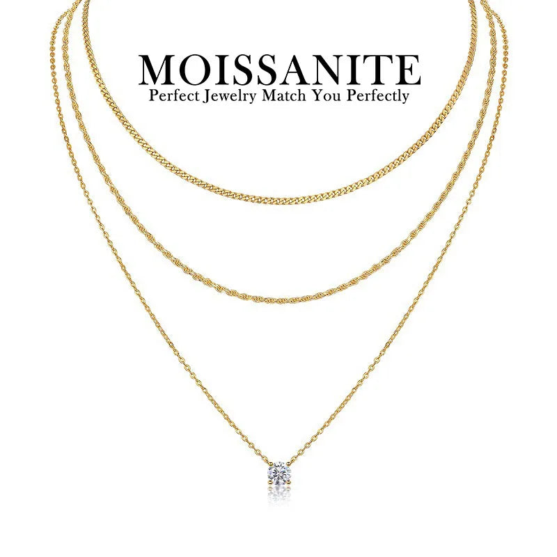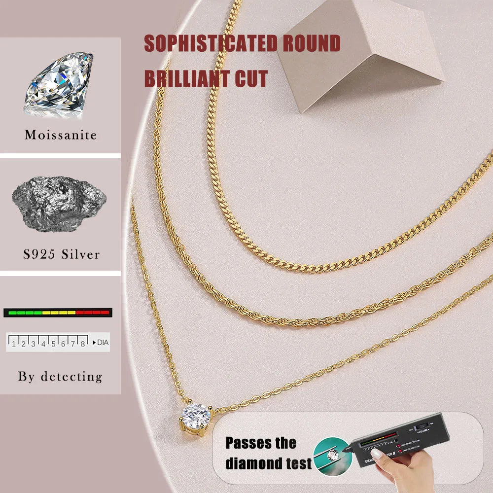 Triple Layer Necklace Moissanite Pendant S925 Sterling Silver 18K Gold Plated Minimalist Layered Jewelry for Women