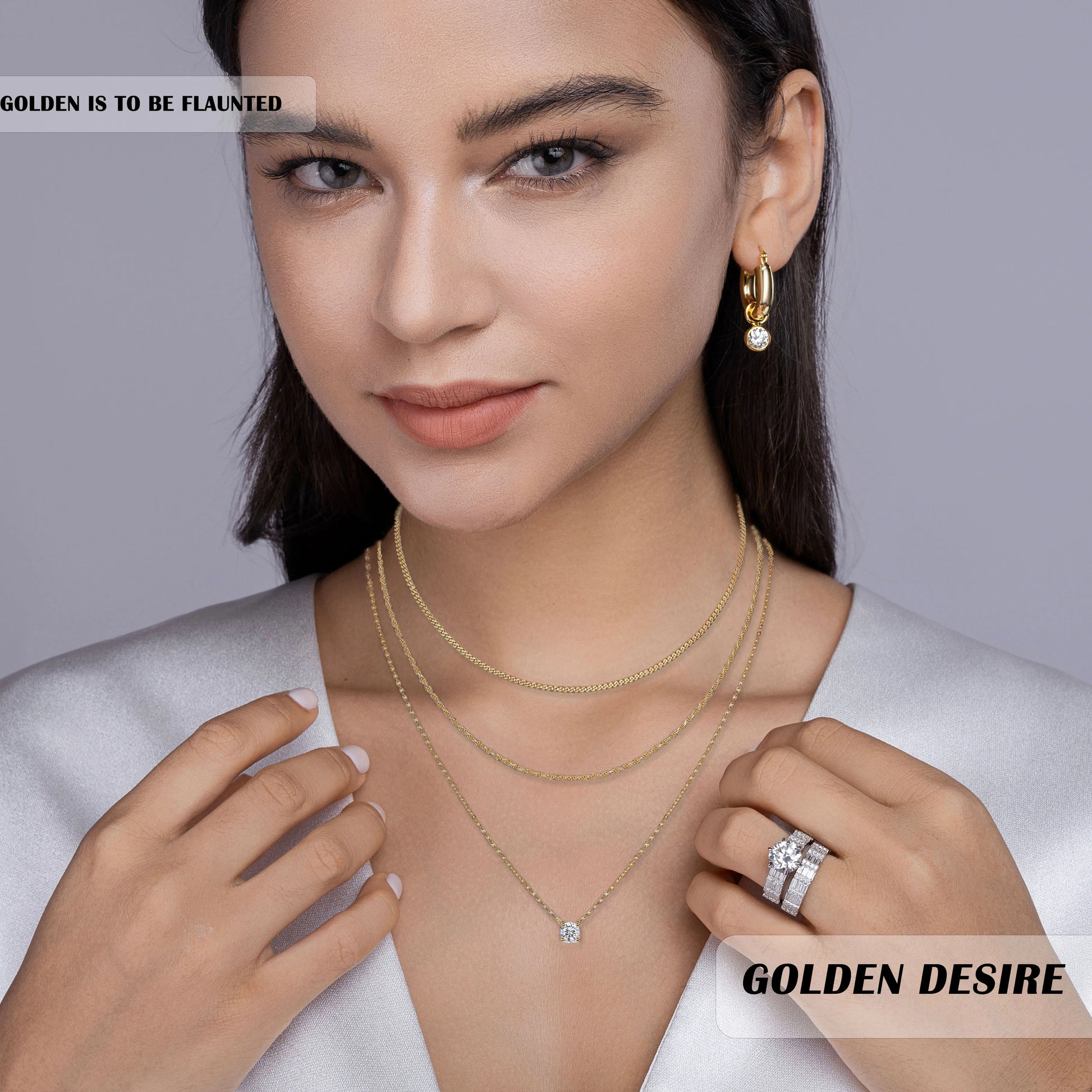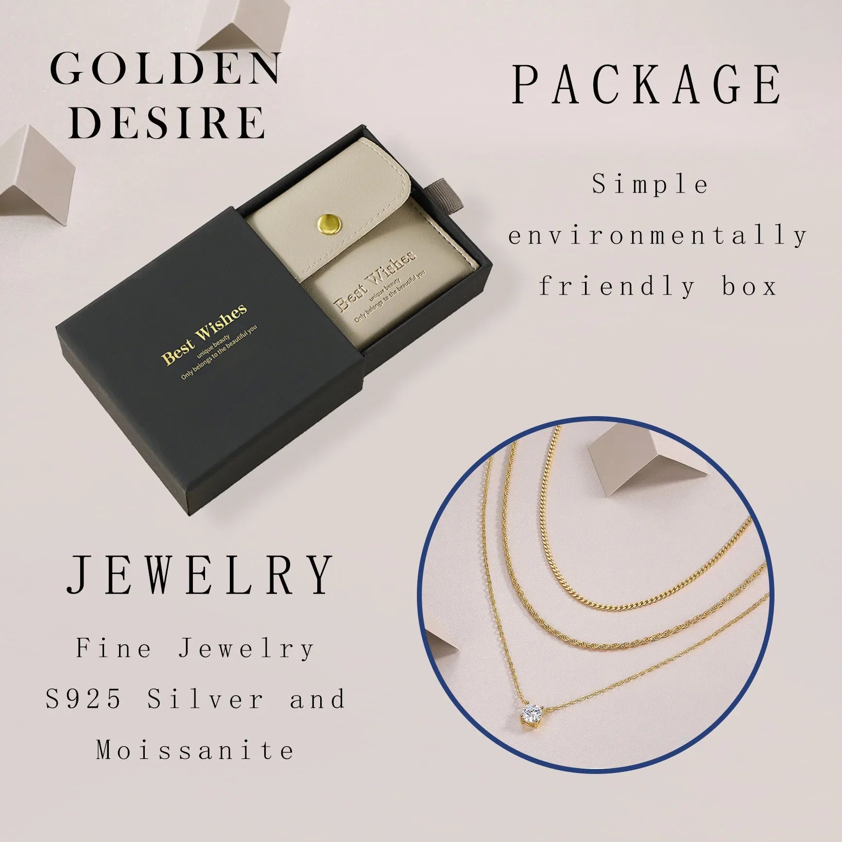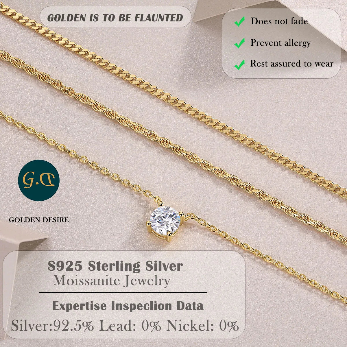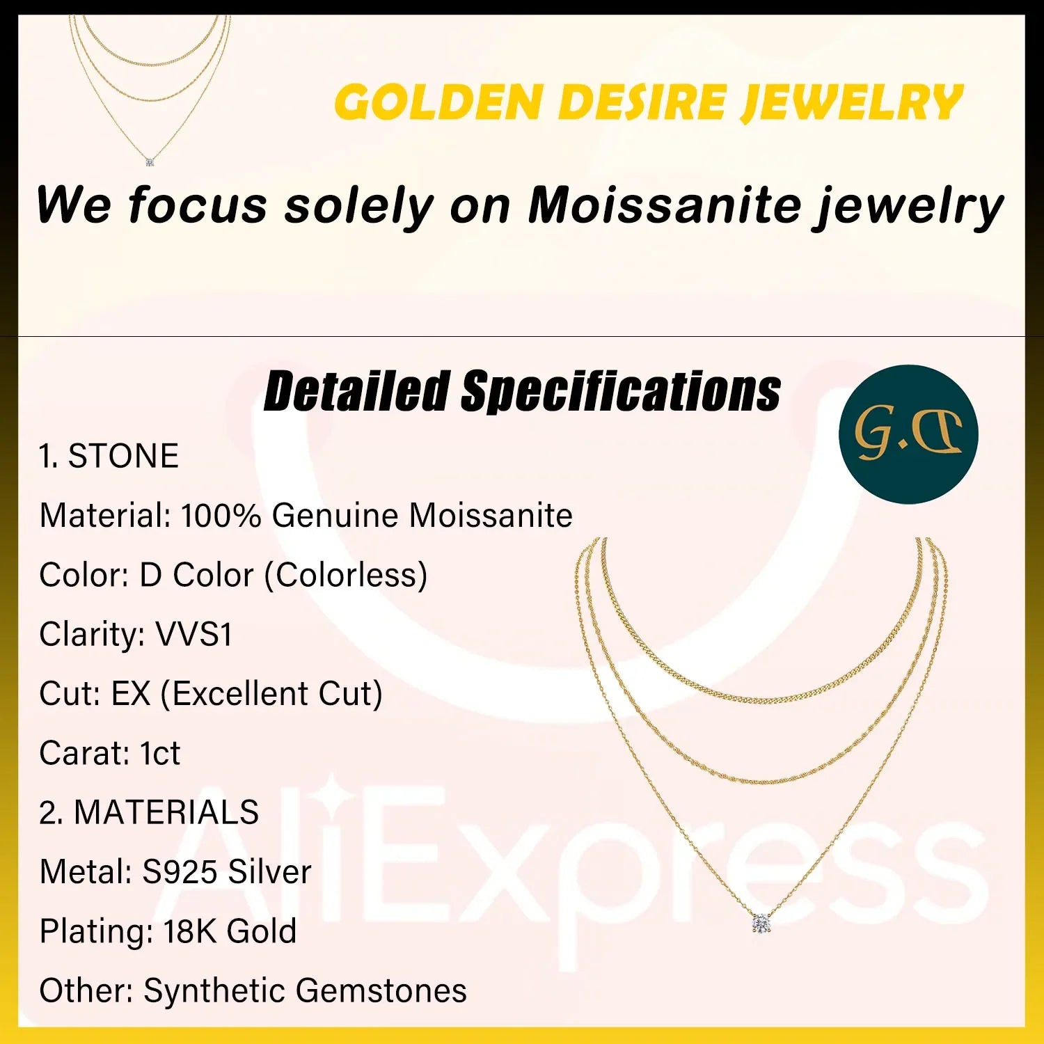 Triple Layer Necklace Moissanite Pendant S925 Sterling Silver 18K Gold Plated Minimalist Layered Jewelry for Women