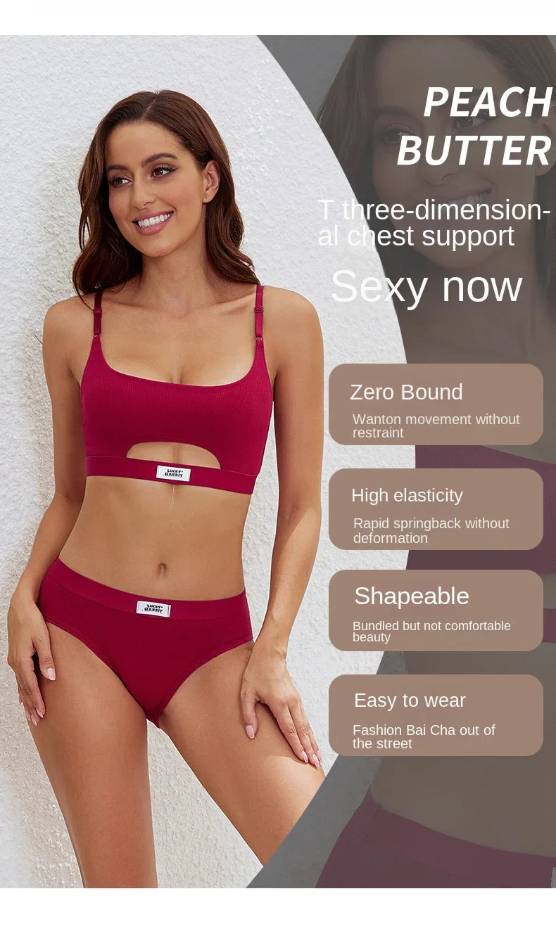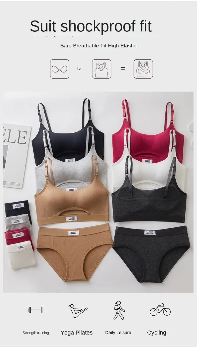 Womens Bikini Set Bra Low Waist Panties Solid Seamless Bralette Sexy Lingeries Suit Sport Brassiere Female Underwear Set